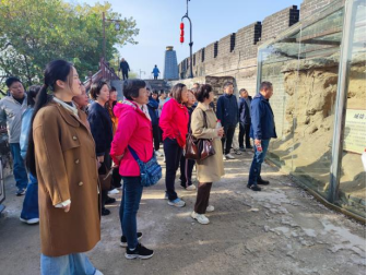 活动首站,大家来到了开封古城墙的古马道遗址博物馆,站在巍峨的城墙下,抚摸着斑驳的砖石,老师们仿佛穿越时空,听到了历史的回响。通过讲解员的详细介绍,大家深入了解了开封城“城摞城”的奇特历史现象以及古代城墙的防御体系和建筑智慧。