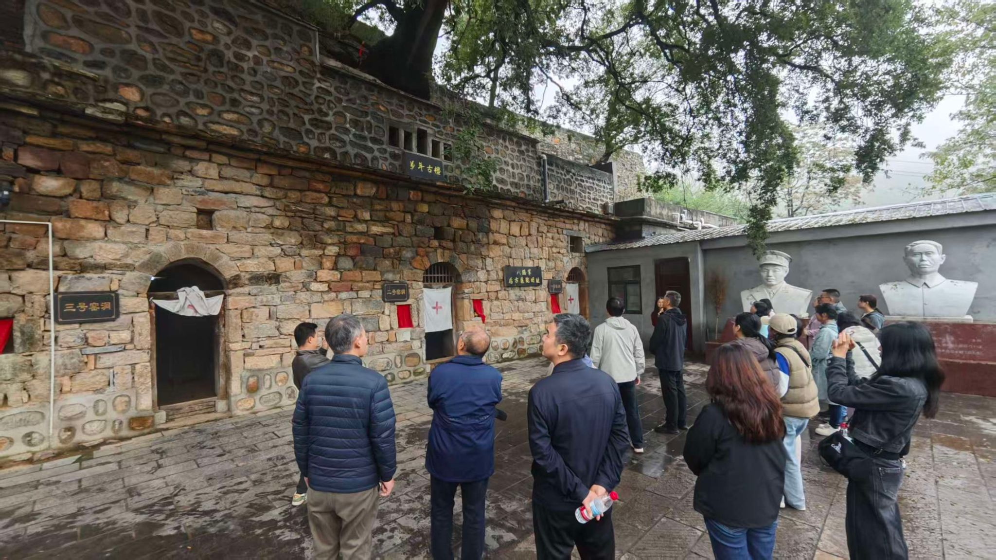 在参观过程中,教职工们驻足于院内一棵被誉为“生命守护者”的万年古橿树前,久久凝望。这棵历经千年风霜的古树,见证了八路军医护人员在炮火中抢救伤员的感人场景,也象征着中华民族坚韧不拔、生生不息的精神力量。这棵古树不仅是一处自然奇观,更是一座无声的丰碑,它与八路军后方医院共同构筑起一座精神高地,激励着新时代教育工作者不忘来时路,走好脚下路。