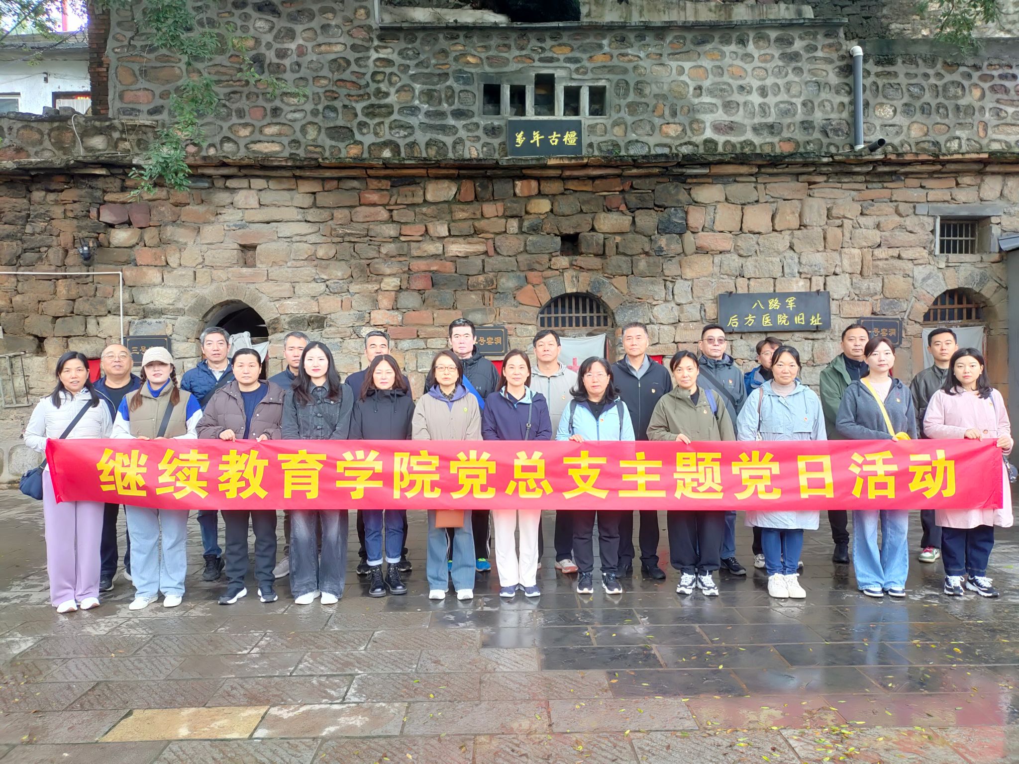为深入学习贯彻党的二十大精神,持续深化爱国主义教育,赓续红色血脉,坚定理想信念,锤炼党性修养,2025年10月11日,继续教育学院党总支组织全体教职工赴荥阳市八路军后方医院旧址,开展“追寻红色记忆 践行初心使命”主题党日活动,接受革命传统教育和爱国主义精神洗礼。