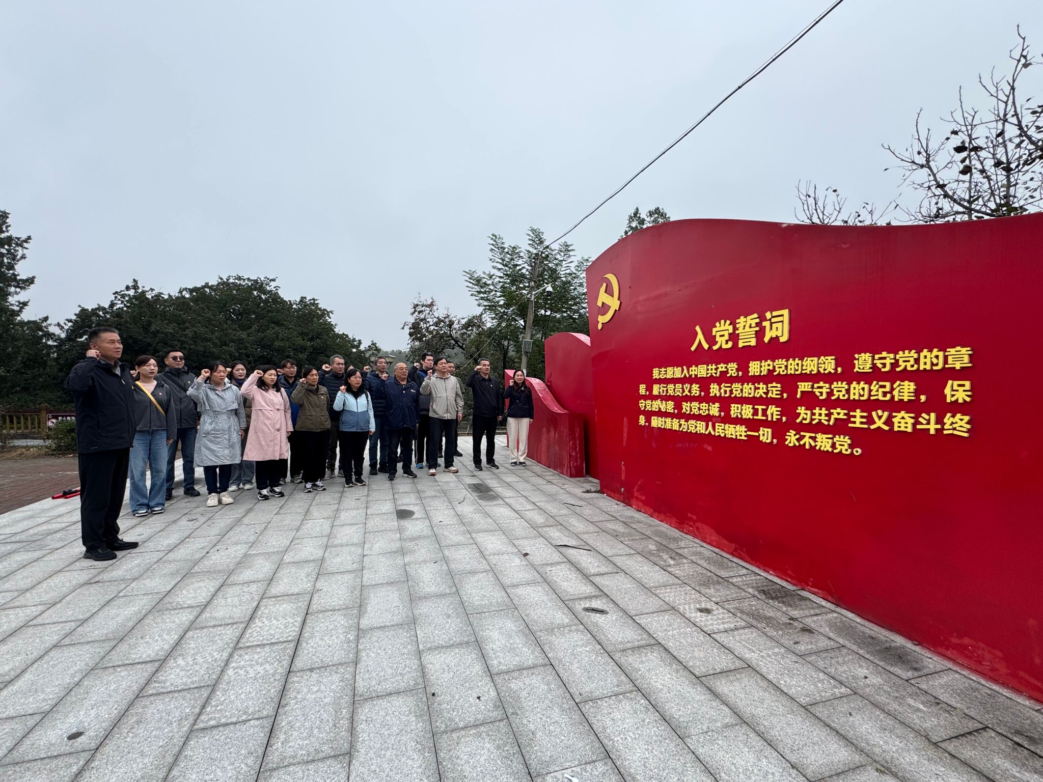 在旧址前,学院全体党员面向党旗,重温入党誓词,铿锵誓言回荡在山谷之间,表达了对党的忠诚与为教育事业奋斗终身的坚定信念。