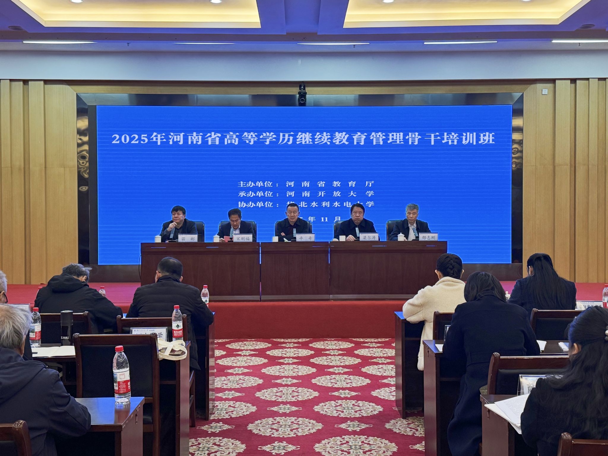2025年11月19日,河南省高等学历继续教育管理骨干培训班在我校龙子湖校区开班。本次培训班由河南省教育厅主办,河南开放大学承办、华北水利水电大学协办,旨在提升全省高等学历继续教育管理骨干的业务能力和管理水平,推动河南省继续教育高质量发展。