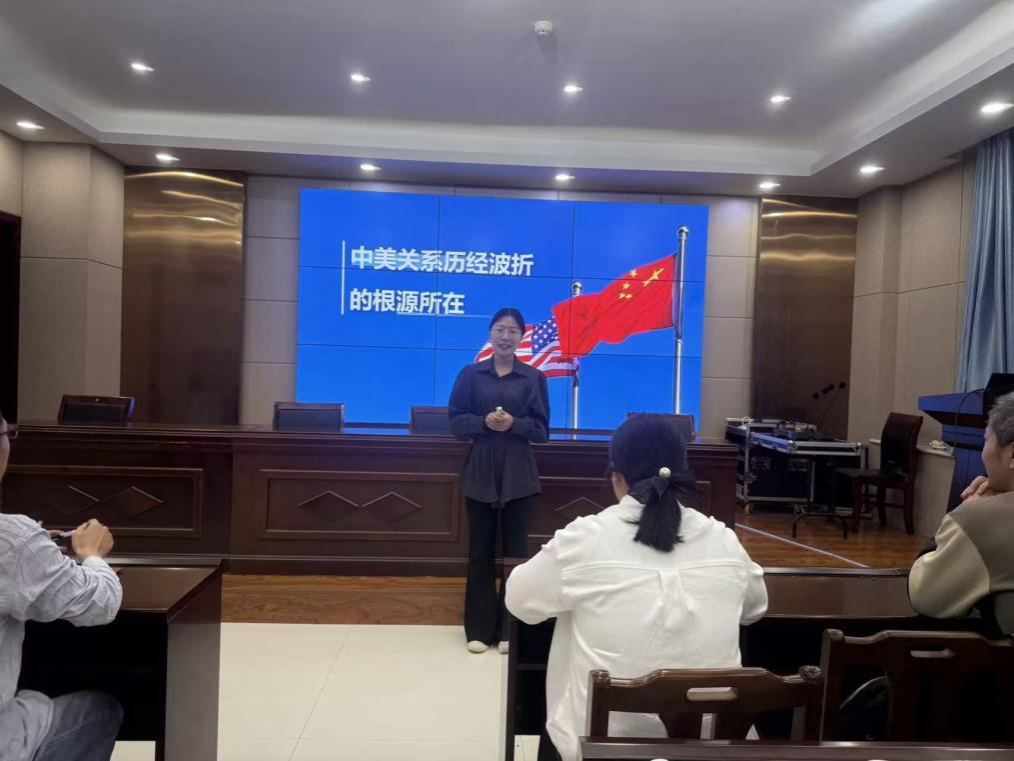 形势与政策教研室的青年教师石珍珍以“探寻新时期中美正确相处之道”为主题进行了教学展示。
