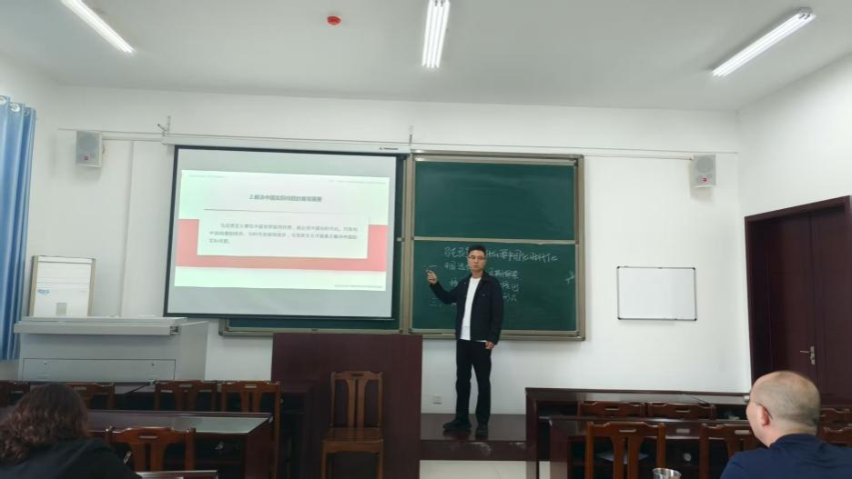 中国特色社会主义理论教研室青年教师武亚南、阎嘉锃分别围绕“马克思主义为什么要中国化时代化”与“推动高质量发展”这两个主题进行了完整的教学演示。