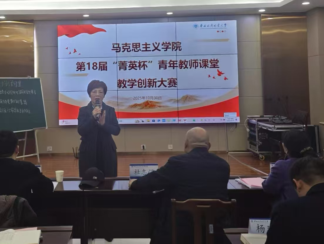 为深入贯彻落实习近平总书记关于思政课的重要论述和指示批示精神,迎接学校第十八届"菁英杯"青年教师课堂教学创新大赛活动,按照学院2025年秋季学期重点工作之一“提升课堂教学质量,开展全员周周练、评、研活动”,切实推动思政课课堂教学革命,提高青年教师教学创新能力与课堂质量,引导教师潜心教书育人,打造教学改革的风向标,10月30日下午,我院在325举办第十八届 “菁英杯” 青年教师课堂教学创新大赛复赛。