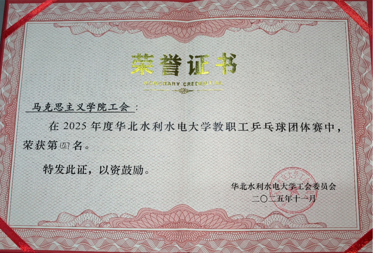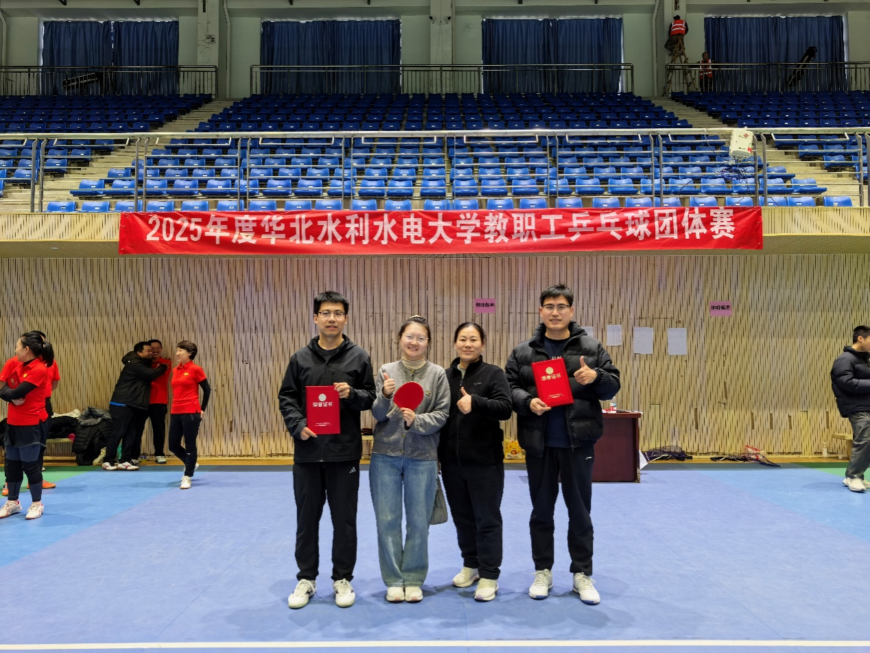 11月22日,华北水利水电大学2025年度教职工乒乓球团体比赛在学校文体会堂举行。我院与公共管理学院工会联合队以优异表现喜获第四名。