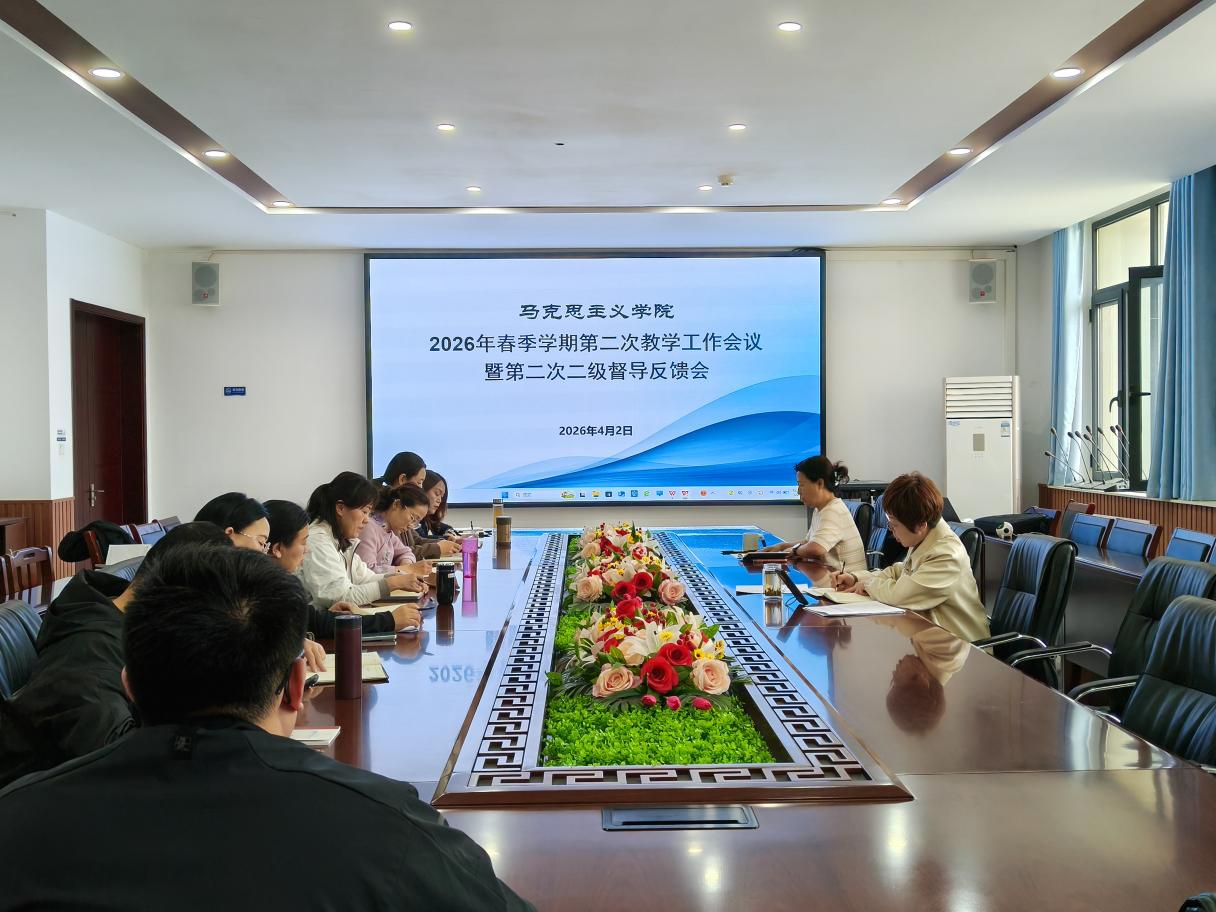 为确保本科教学工作平稳有序推进,持续提升教学质量,4月2日下午,马克思主义学院在303会议室召开2026年春季学期第二次教学工作会议暨二级督导反馈会。马克思主义学院院长张梅、教学办及各教研室主任、副主任参加会议。会议由教学副院长彭慧敏主持。首先,彭慧敏传达了学校教务处教学会议相关精神,明确成绩更正规范流程与监考纪律要求,强调严格监考与线上监考培训工作;部署了学情调研任务,要求每位教师针对授课所有班级学生...