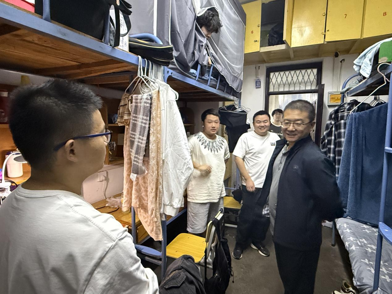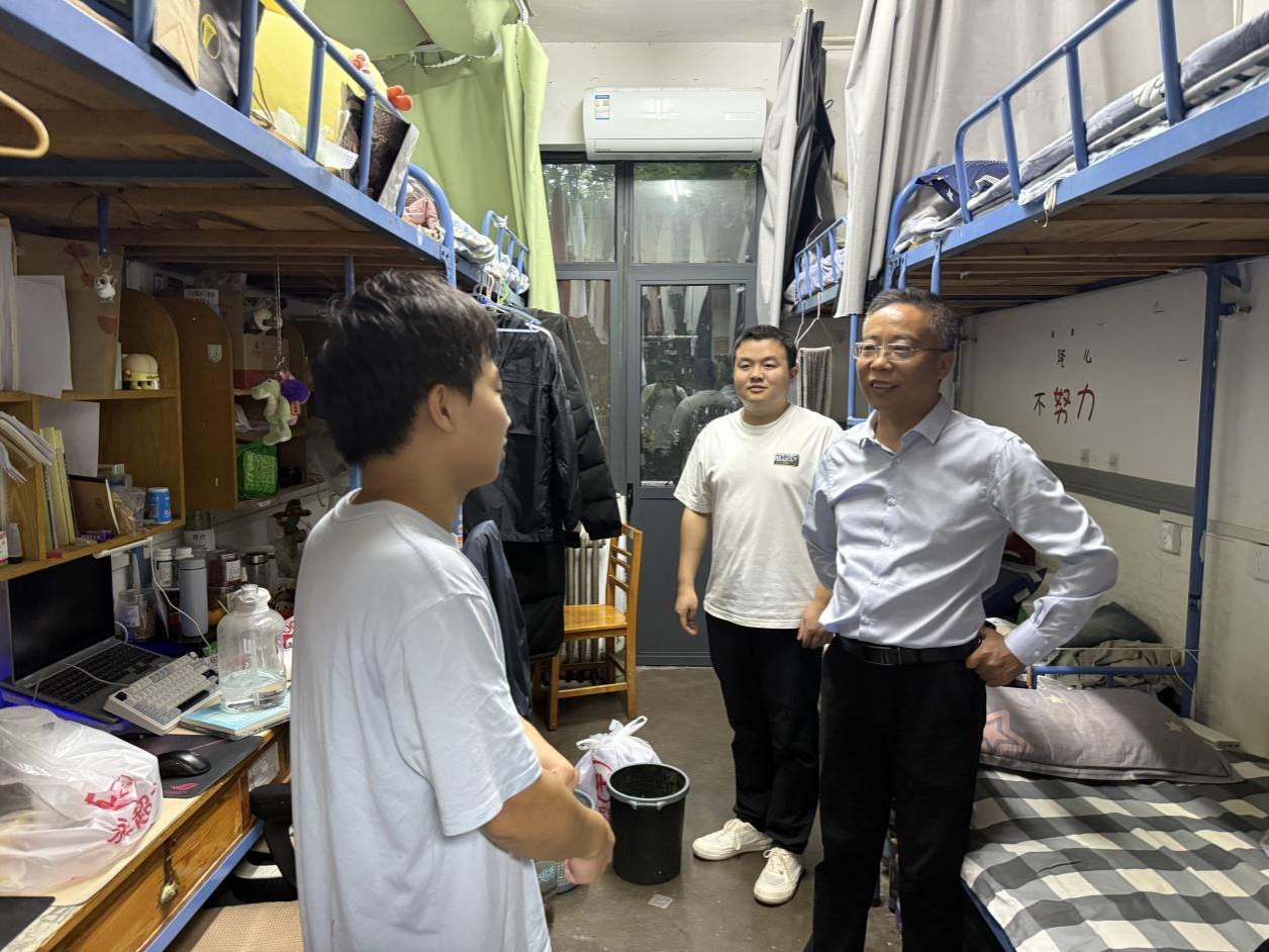 在假期来临之际,为进一步夯实宿舍安全防线,切实了解学生生活状况,我院院领导带领全体辅导员深入学生宿舍,开展安全排查与温情关怀工作。每到一间宿舍,院领导都仔细查看室内用电安全情况,重点检查是否存在违规使用大功率电器、私拉电线、消防隐患等问题,同时提醒同学们离宿前务必切断电源、关好门窗,做好防火防盗措施。此外,院领导还与同学们亲切交流,询问大家的假期计划与生活需求,叮嘱留校同学合理安排学习与休息时间,注意饮食卫生与出行安全;对计划离校的同学,反复强调要遵守交通规则,保持通讯畅通,及时向辅导员报备行程动态。一句句叮嘱、一声声关怀,让同学们在假期前夕感受到了学院大家庭的温暖。