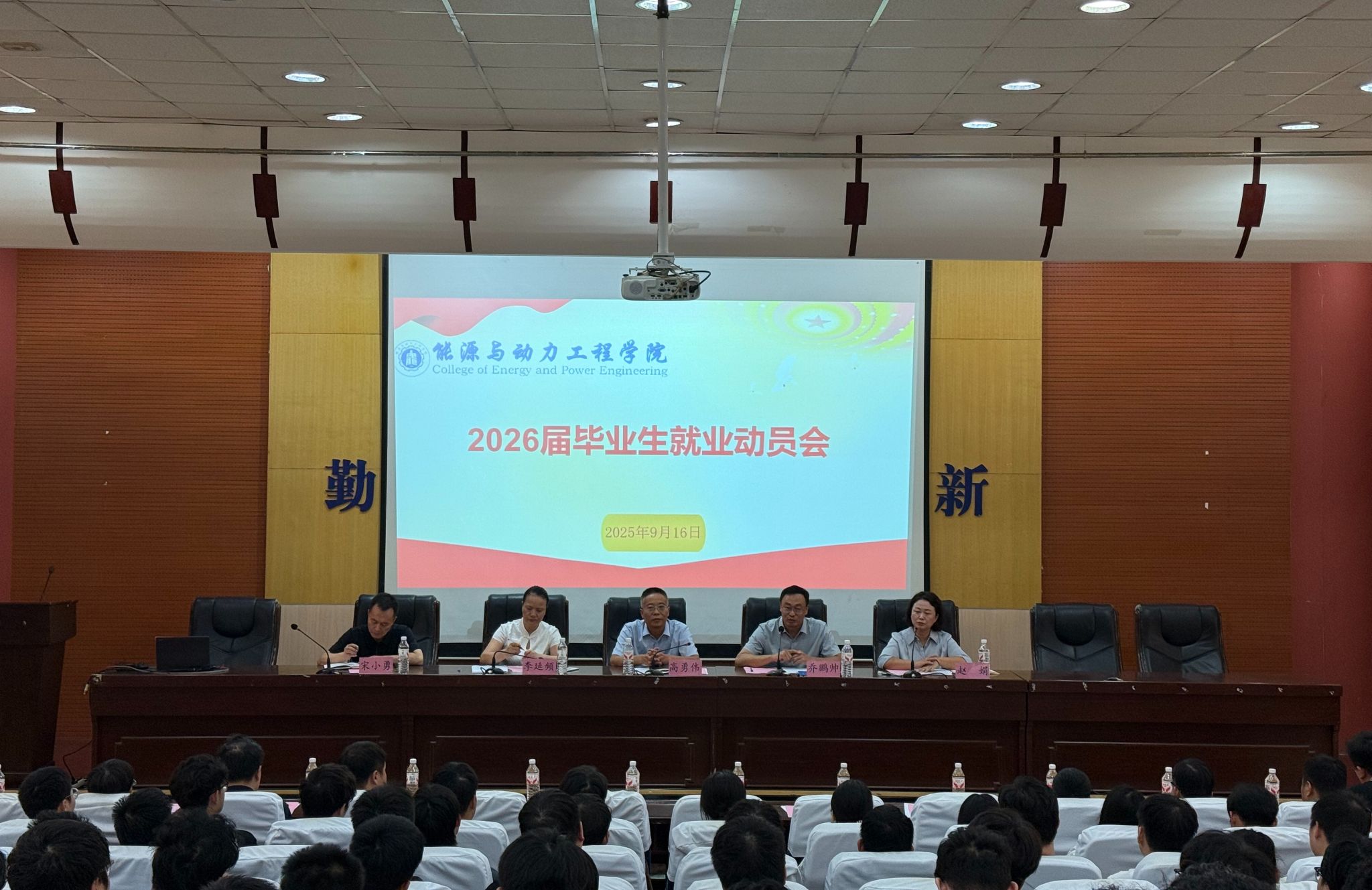 为做好2026届毕业生就业服务,助力学生实现高质量充分就业,能源与动力工程学院于2025年9月16日下午,在花园校区讲堂三召开2026届毕业生就业动员会。校就业处副主任乔鹏帅、院党委书记高勇伟、院长李延频、院党委副书记赵娟、副院长宋小勇以及学院各教研室主任、班导师、辅导员共同参会,会议由院党委副书记赵娟主持。乔主任强调:一要锚定“服务学生就业”核心,紧跟学校就业工作整体规划,确保工作方向与学校同频共振;二要立...