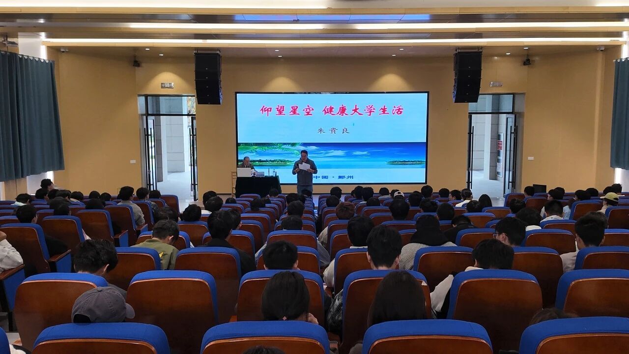 11月15日上午,“学·思·启”大讲堂(2)“仰望星空 健康大学生活”讲座圆满结束。本次讲座由华北水利水电大学“五老宣讲团”成员朱贵良教授主讲。朱贵良教授深耕科研,发表70余篇论文和16部论著,为10多万学子带来教育指导,并在高校进行400多场报告,致力于引领青年思想。校关工委副主任、智川书院院长饶明奇,清源书院师生代表参加讲座。本次讲座由“一站式”学生社区建设办公室主任严海蒙主持。