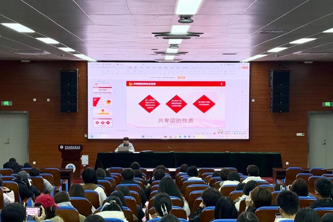 程嘉城老师主讲《入团第一课——以青春之名,励青春之志》。课程从共青团的性质、历史出发,引导同学们深刻理解“共青团员”这一身份的光荣与责任。程老师强调,成为一名合格团员,不仅要具备良好的思想政治素质,更要在学习、生活中发挥先锋模范作用,树立远大理想,锤炼品德修为。