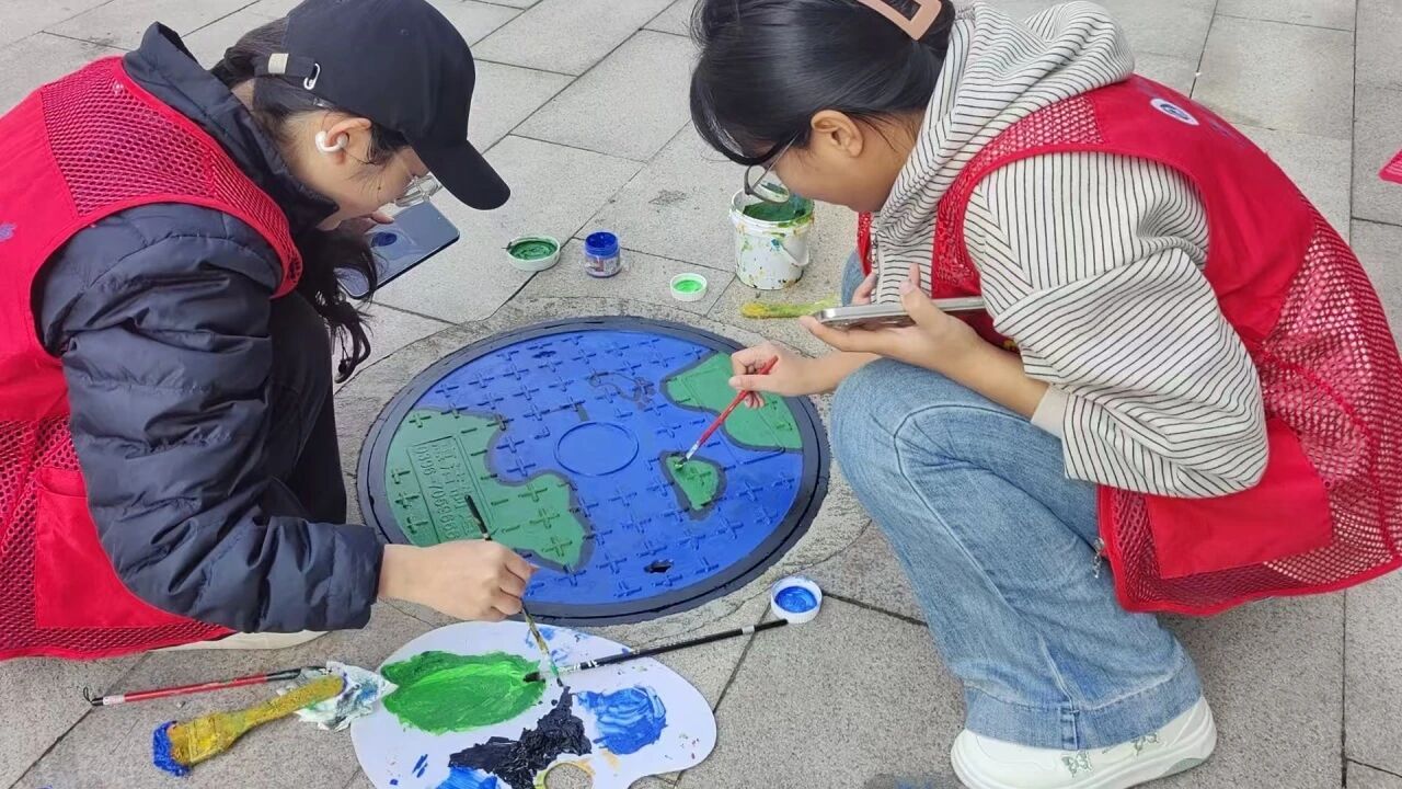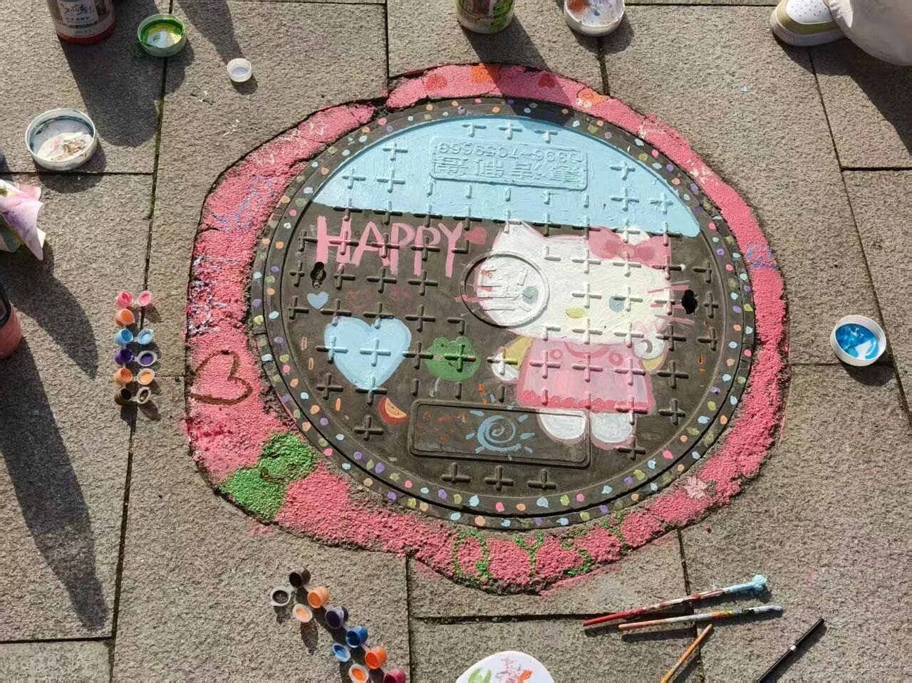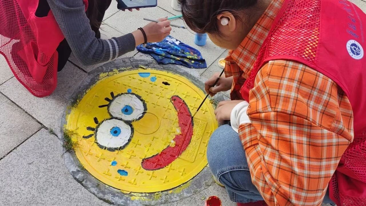 一笔一画皆是心意,一景一物皆显担当。完成彩绘后,志愿者们为井盖做好防水封层处理,主动向路过师生讲解图案背后的雷锋故事与文明内涵,让小小井盖成为传播雷锋精神的“移动宣传牌”。