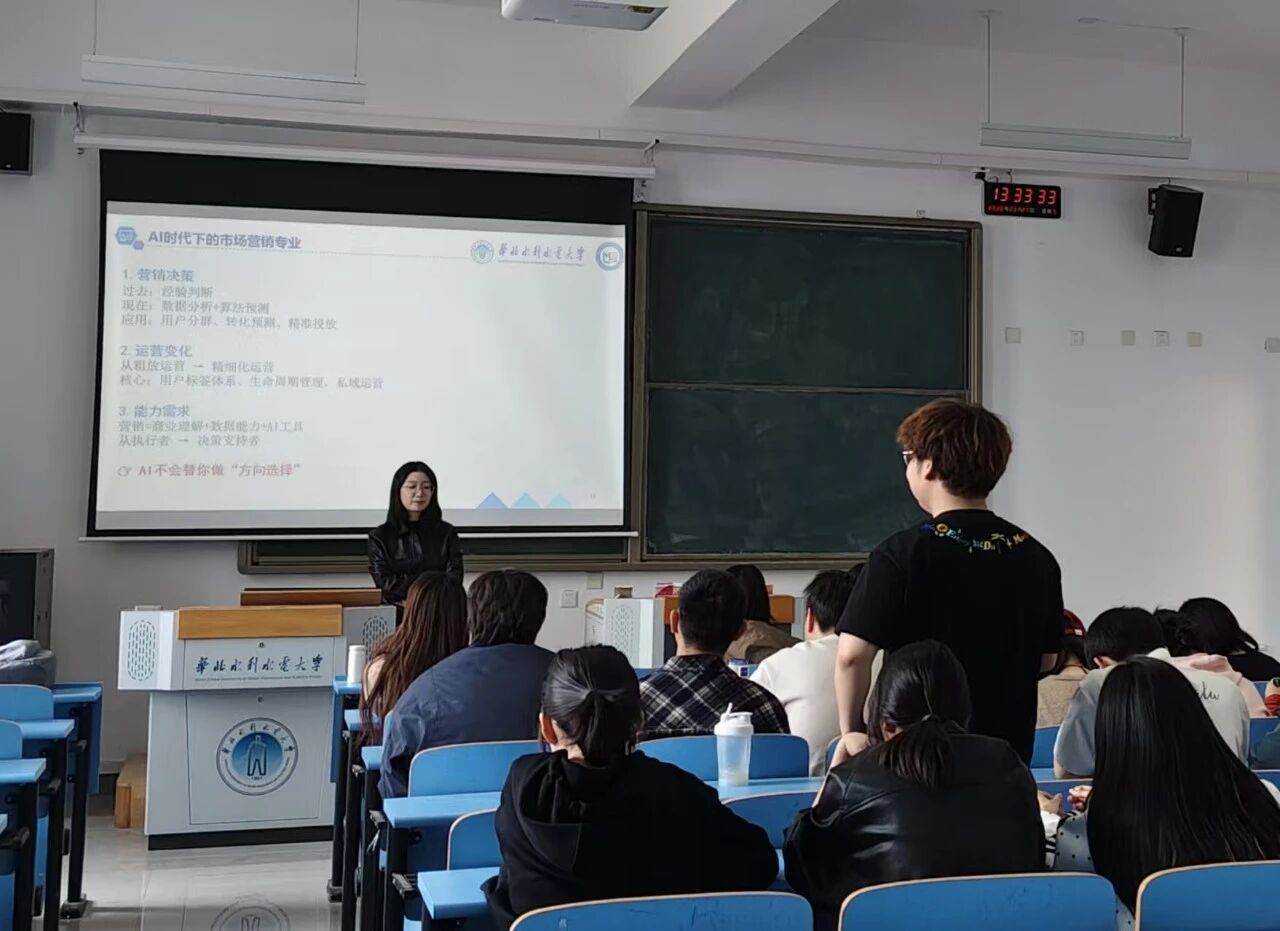 本期我们很荣幸邀请到了华北水利水电大学管理与经济学院申润典老师,深耕市场营销领域多年的她,兼具扎实的专业理论功底与丰富的行业实践经验,长期专注于市场营销专业教学与青年学生职业发展指导。本期“学·思·启”大讲堂,申老师以《洞察市场·规划未来:市场营销人的成长路径与多元发展》为主题,从专业认知、能力培养、职业规划等多个维度为学子们拨开成长“迷雾”,在干货满满的分享中,为大家铺就清晰的专业成长之路。