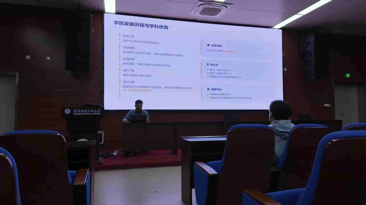 3月26日下午在华水江淮校区,专门面向数学与统计学院学生的“学·思·启”大讲堂顺利举行。数学与统计学院资深讲师王禹老师深入剖析了学院发展、专业建设、学业规划、考研深造与就业求职等关键议题,为同学们的大学之路提供了清晰的导航。
