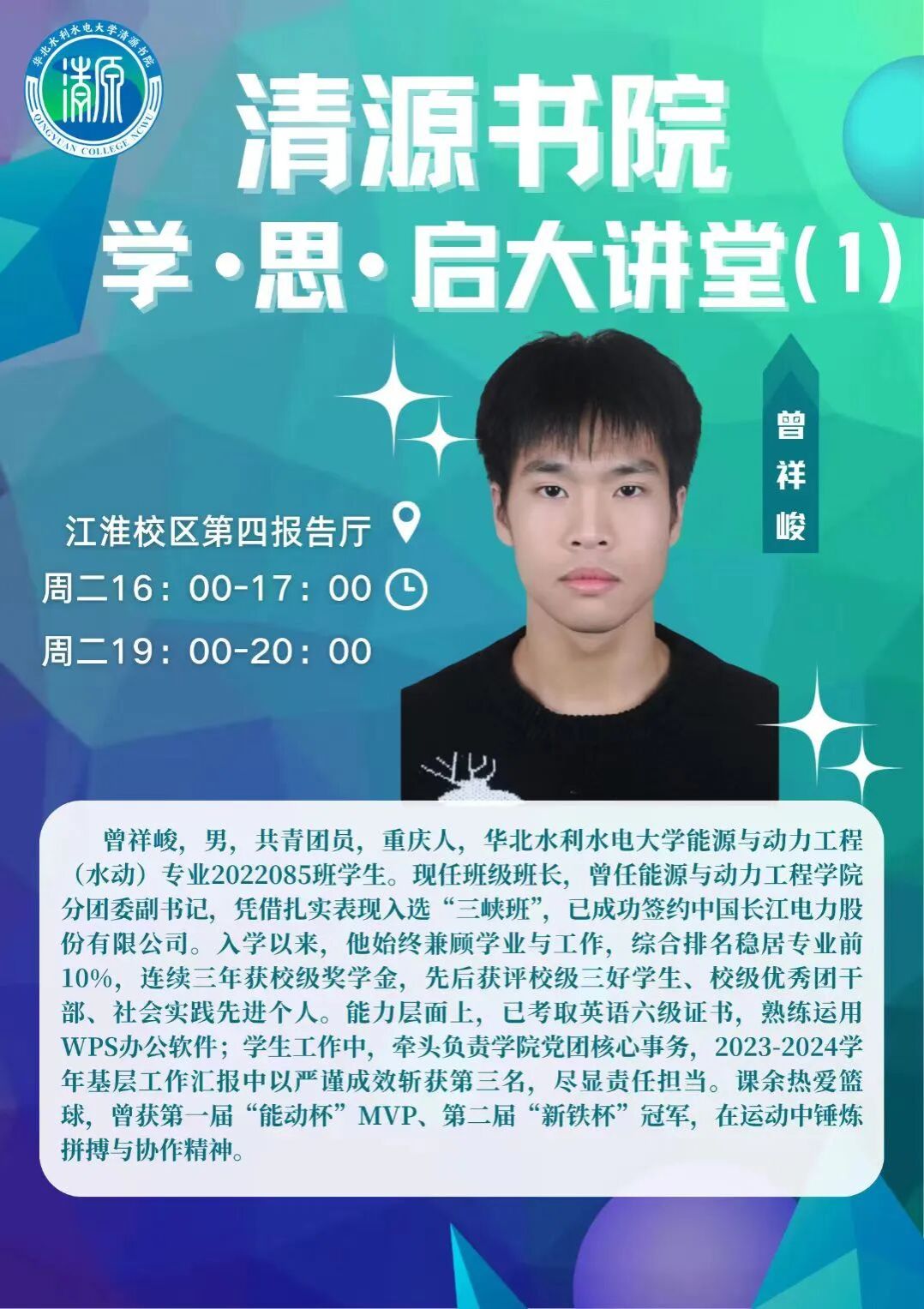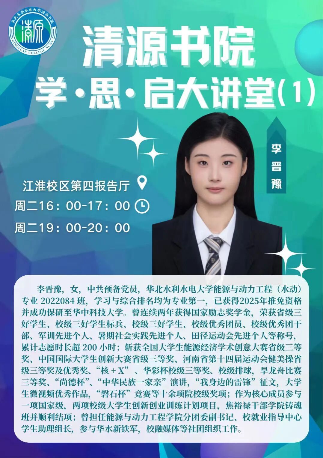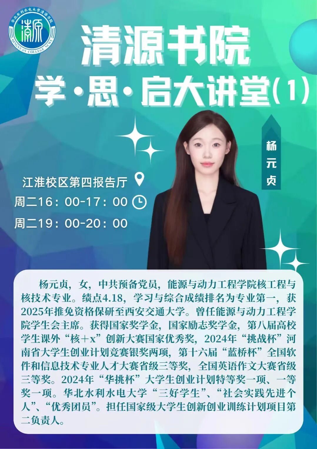 这是一次与优秀学长学姐深度交流的难得机会,更是一次为自己充电赋能的成长契机。我们在大讲堂,等待你的到来,共同开启你在清源书院的精彩篇章。