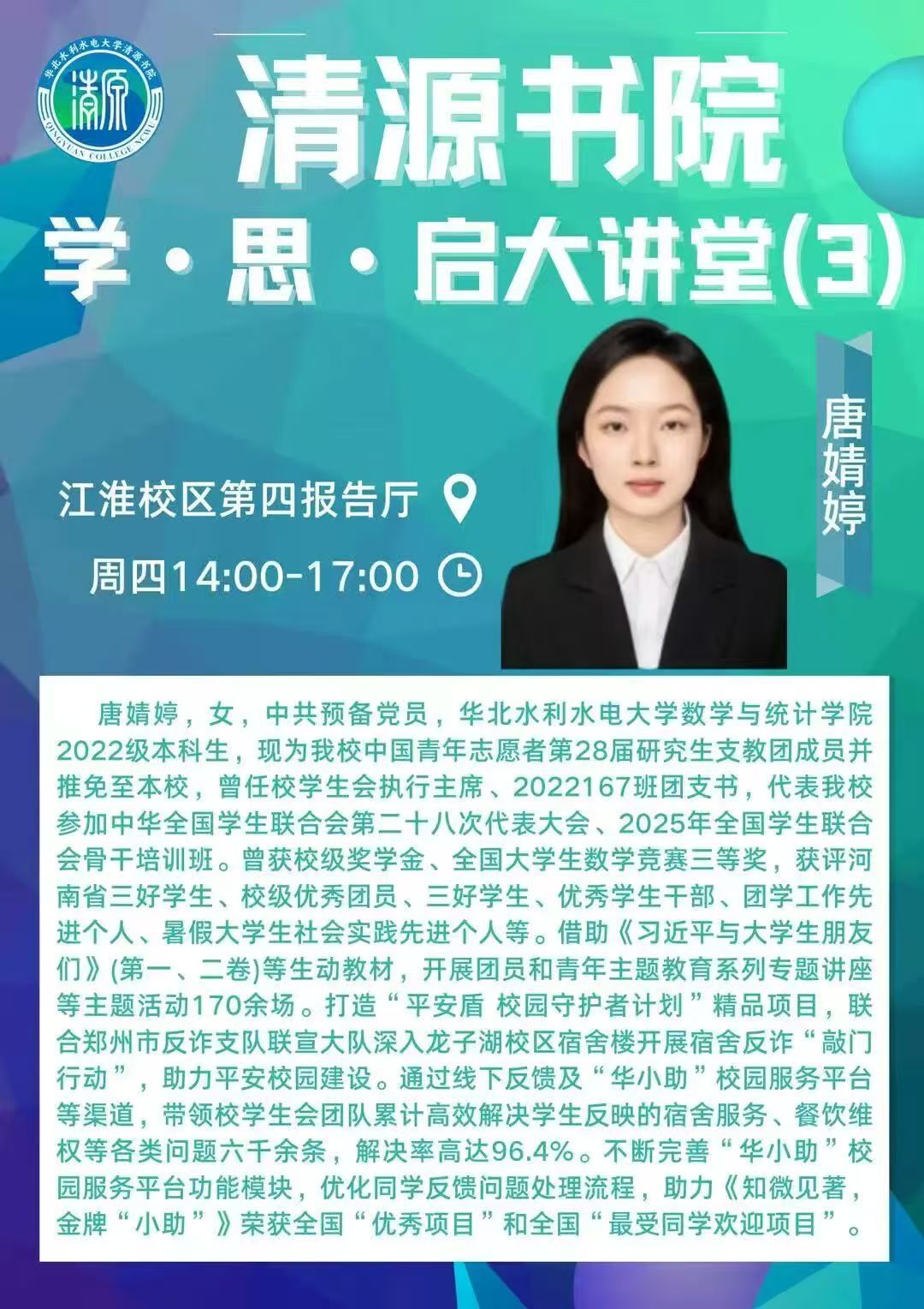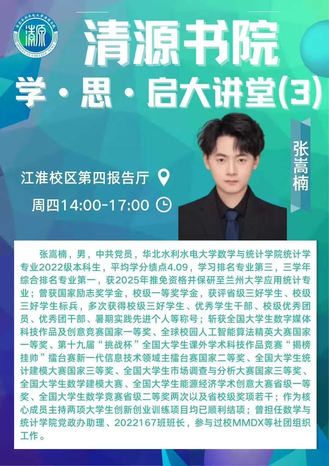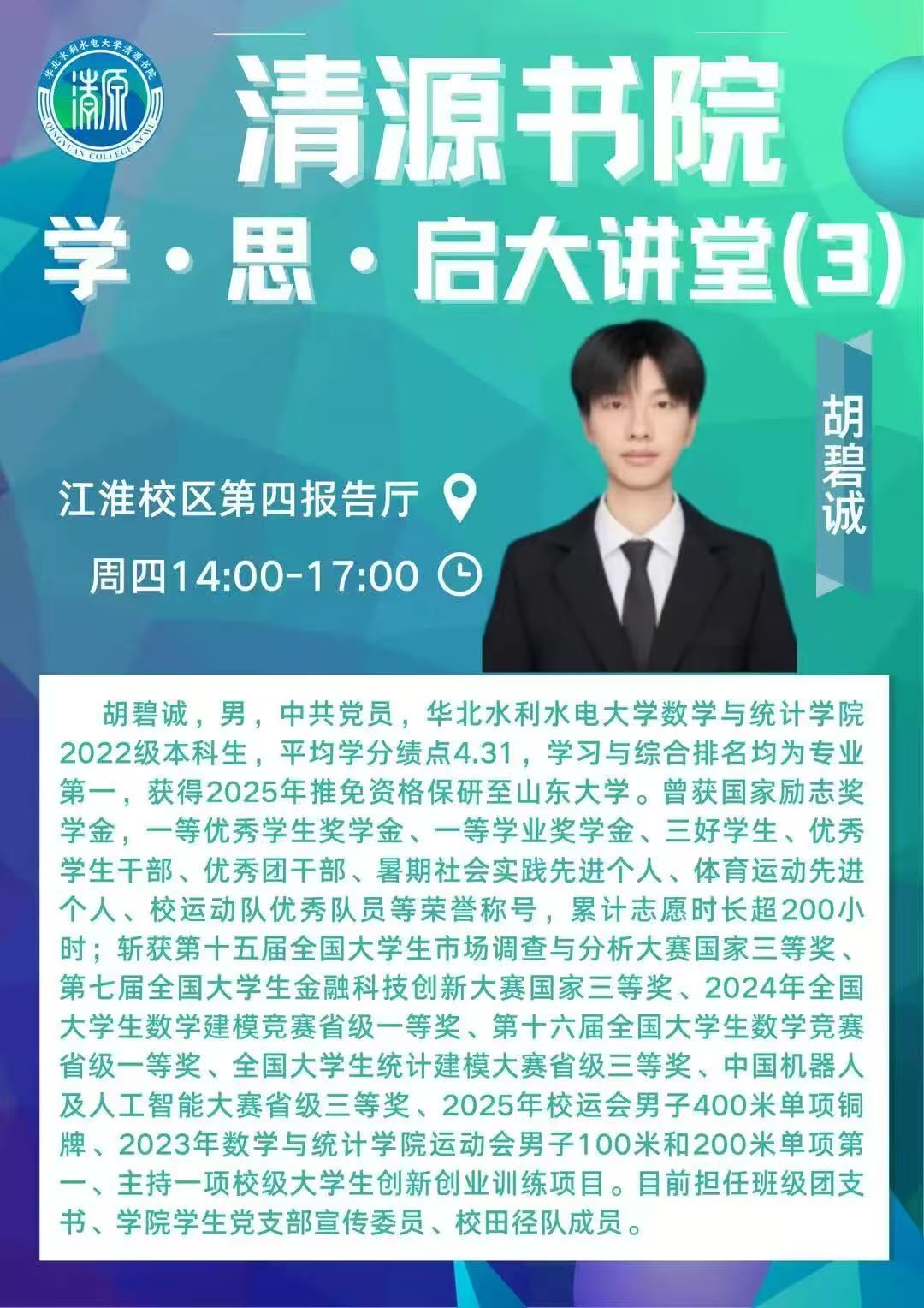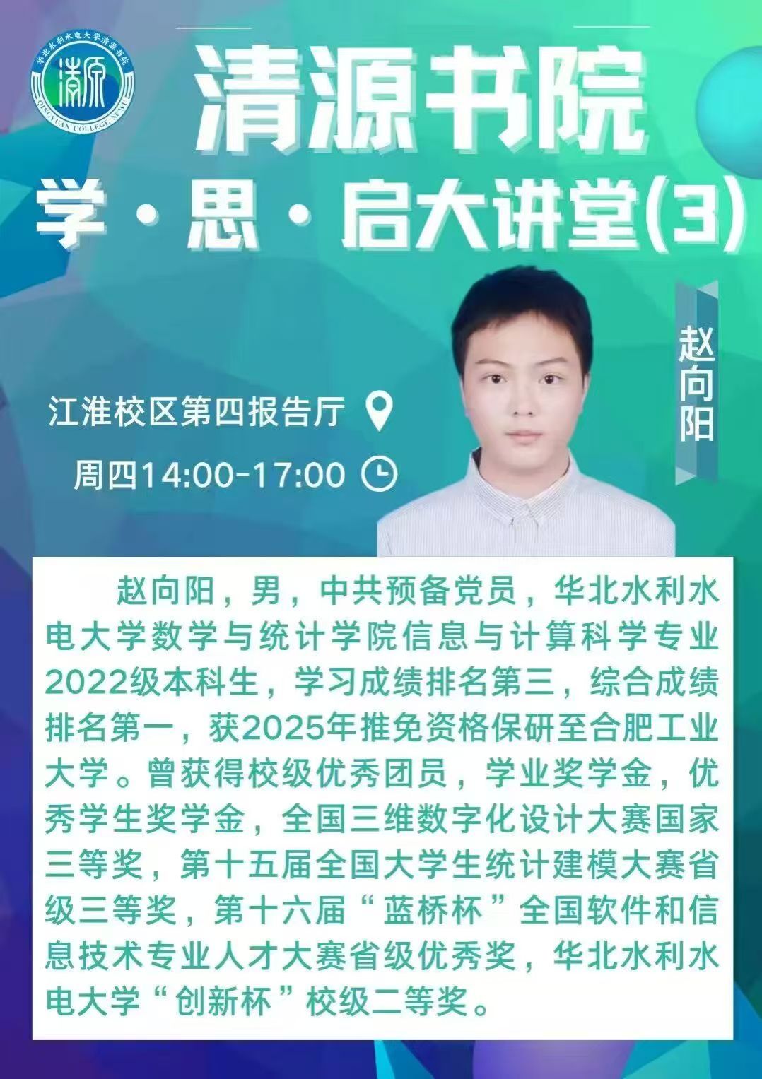 为助力同学们明确发展方向,清源书院联合数学与统计学院,精心策划“学思启大讲堂,第3期——朋辈领航,筑梦未来,干货满满的分享即将开启,数学与统计学院的同学们,快来集合!