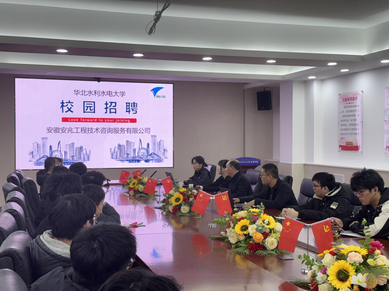 为进一步深化校企合作与人才供需对接,1月15日,安徽安兆工程技术咨询服务有限公司董事长谢文金一行来我院召开专场招聘宣讲会,我院20余名研究生参加,党委副书记张长辉接待并对其表示热烈欢迎。