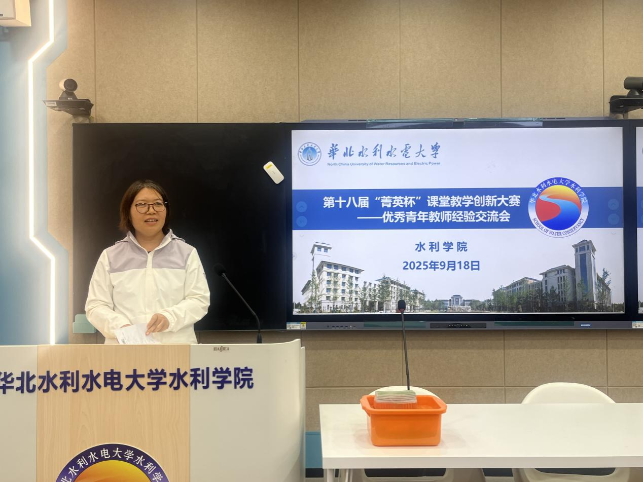 为进一步推广优秀教学经验、助力青年教师成长,水利学院于9月18日在水利楼503教室举办了第十八届“菁英杯”青年教师课堂教学创新大赛——优秀青年教师经验交流会。会议由水利学院副院长赵继伟主持,往届多位竞赛表现突出的教师现场分享经验。