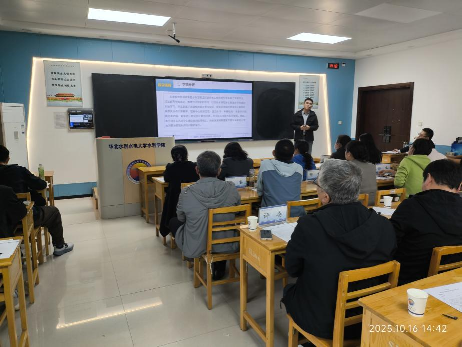 10月16日下午,水利学院第十八届“菁英杯”青年教师课堂教学创新大赛复赛在水利楼501教室举行,一场关于教学智慧与教师魅力的盛宴华彩上演,这不仅是一场技艺的切磋,更是一次教育初心的集体叩问与生动诠释。学院班子成员、特邀评委老师、参赛教师和观摩教师参加此次活动,大赛由副院长赵继伟主持。