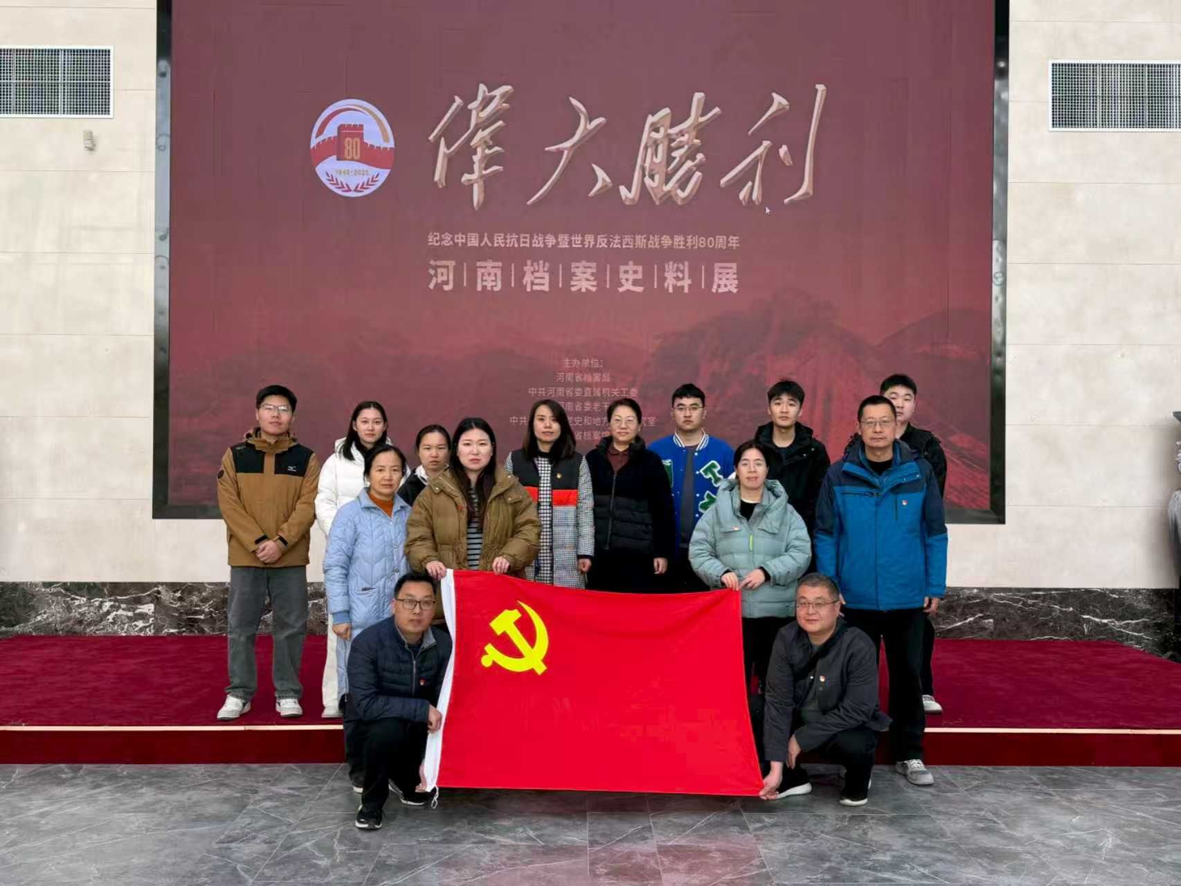 2025 年 11 月 27 日,公共数学第一教学部支部全体党员走进河南省档案馆,沉浸式参观 “百年恰是风华正茂” 党史党性主题教育展,在历史档案中追溯初心使命,于精神洗礼中坚定理想信念,并重温入党誓词,凝聚奋进力量。