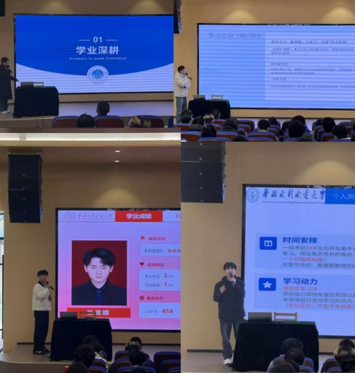 2025年11月27日,数学与统计学院曹雪、唐婧婷、胡碧诚、赵向阳、张嵩楠等五位学子来到华北水利水电大学江淮校区清源书院,为书院的大一新生进行生涯规划与经验分享。