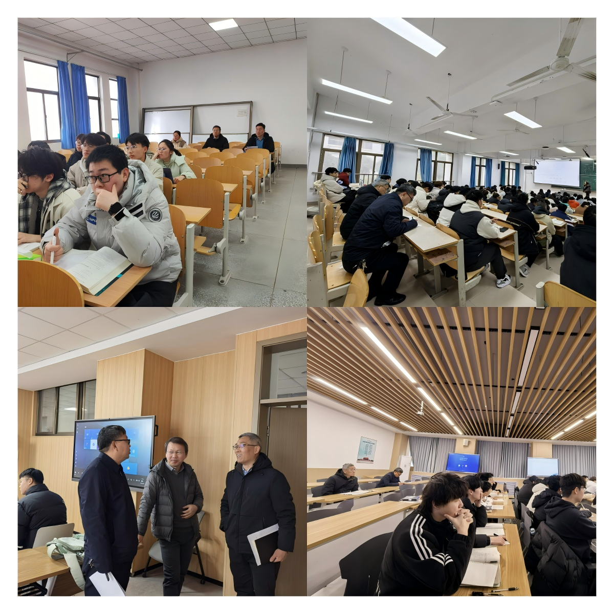 副院长王玉柱在龙子湖校区三号楼3202随堂听了王俊芳老师讲授的《高等数学A2》课程;随后又前往一号楼1103、1208教室,认真听取数学拔尖学生培养基地班《数值分析》、《数学分析2》两门课程。课后,王玉柱与任课教师、学生代表围绕基地班建设思路、人才培养模式改革、课程体系优化及发展前景等核心问题展开交流讨论,为进一步完善数学拔尖人才培养方案、提升培养质量明确方向。