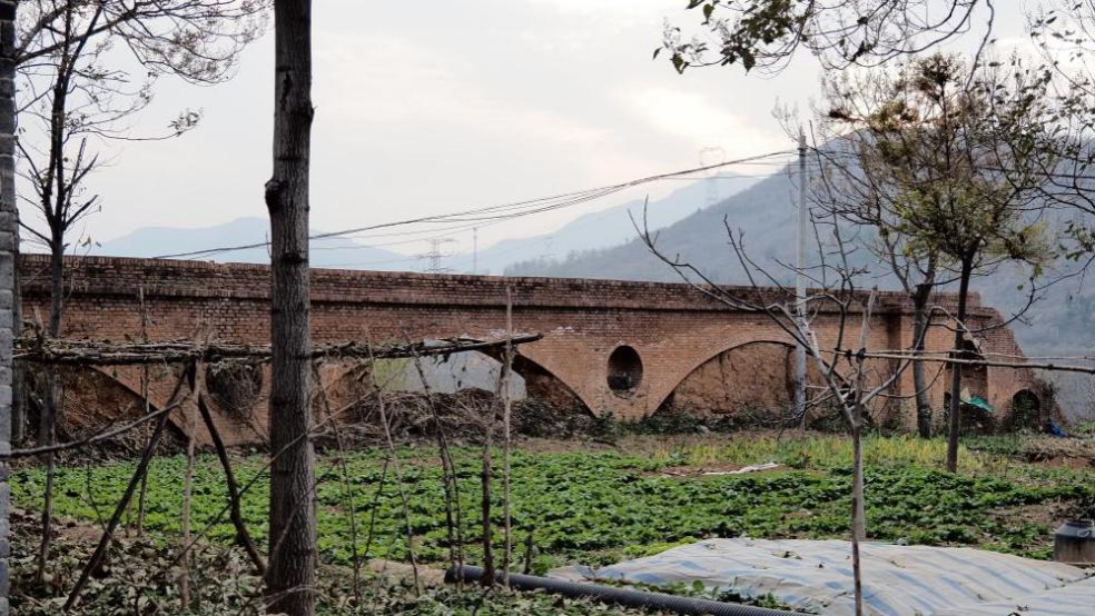 走访集沟村前进渡槽。该渡槽在适应地形、提升输水效率方面具有代表性,虽结构已有损毁,但砌筑工艺与支撑结构仍清晰可辨,反映当时因地制宜的技术思路。