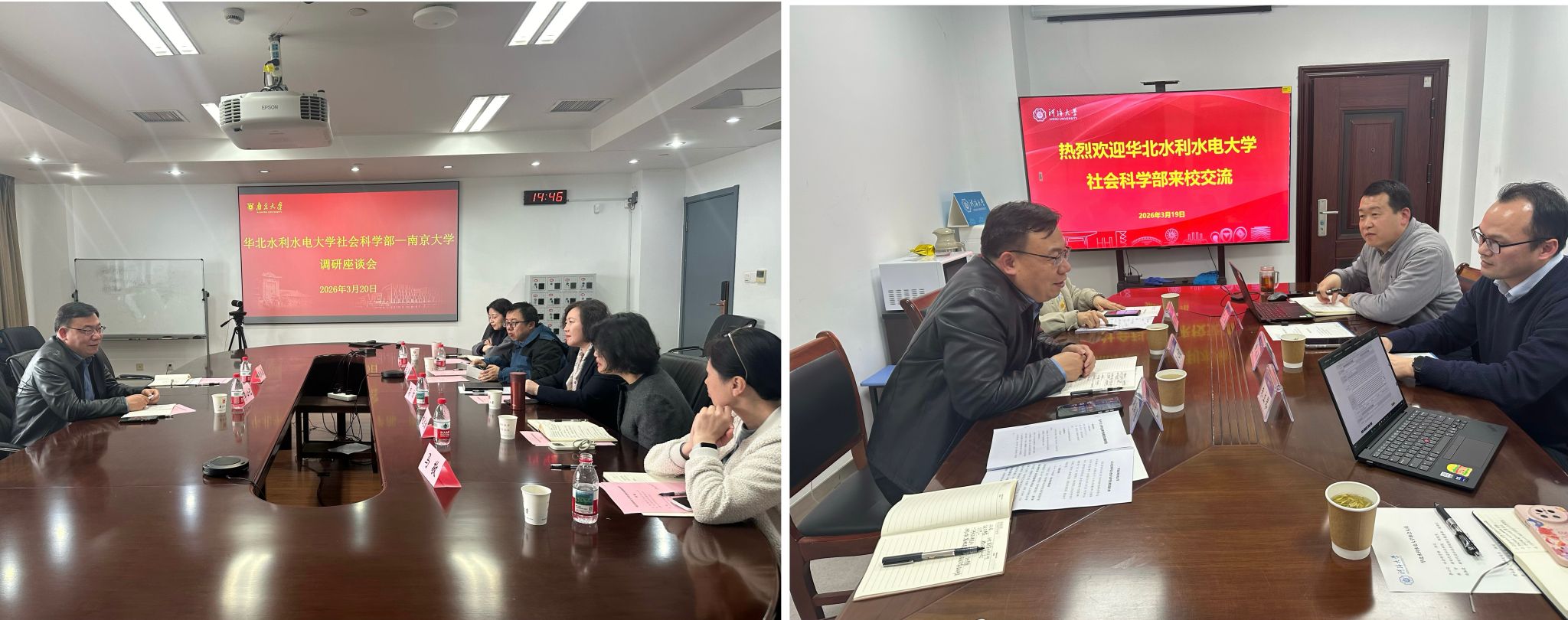 调研过程中,李心记一行与两校同行充分交流探讨,深入学习了两校在社科管理体制机制、新文科建设、科研创新发展、智库建设、哲学社会科学实验室建设等方面的宝贵经验。此次交流调研,搭建了校际社科领域合作交流的桥梁,为我校社会科学部精准把握新文科建设方向、深化治水特色社科研究、完善智库建设体系提供了新思路、新方法。