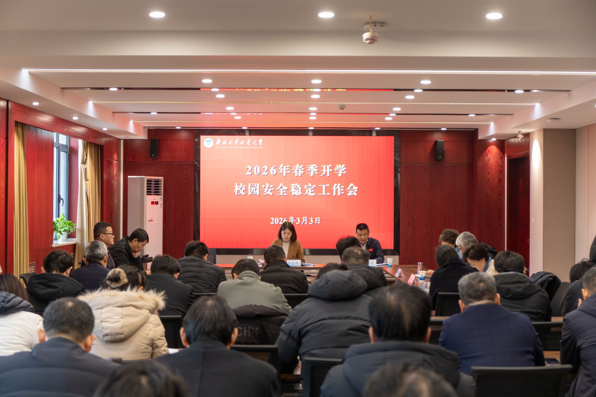 3月3日上午,我校在龙子湖校区第三会议室召开2026年春季开学校园安全稳定工作部署会,校党委副书记焦爱萍主持并讲话,副校长张志增出席会议并安排部署工作。全校相关职能部门负责人和各学院、书院党委书记参加会议。