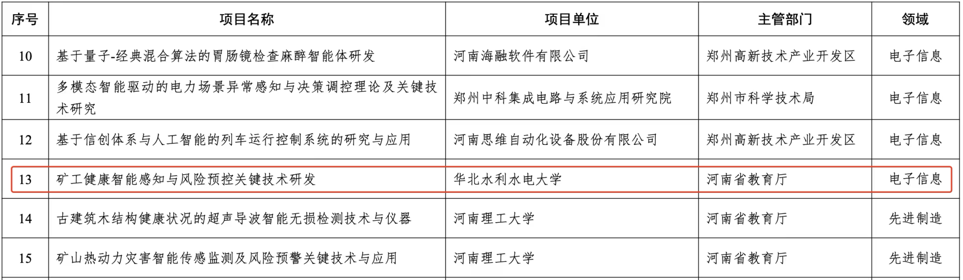 近日,河南省科学技术厅公布2026年度省重点研发专项备选项目库入库名单,由民建华水支部主委杨雪教授牵头,联合中原工学院、云图数据(郑州)有限公司共同申报的“矿工健康智能感知与风险预控关键技术研发”项目成功入选,是我校唯一入选2026年度河南省重点研发专项备选项目库的项目。