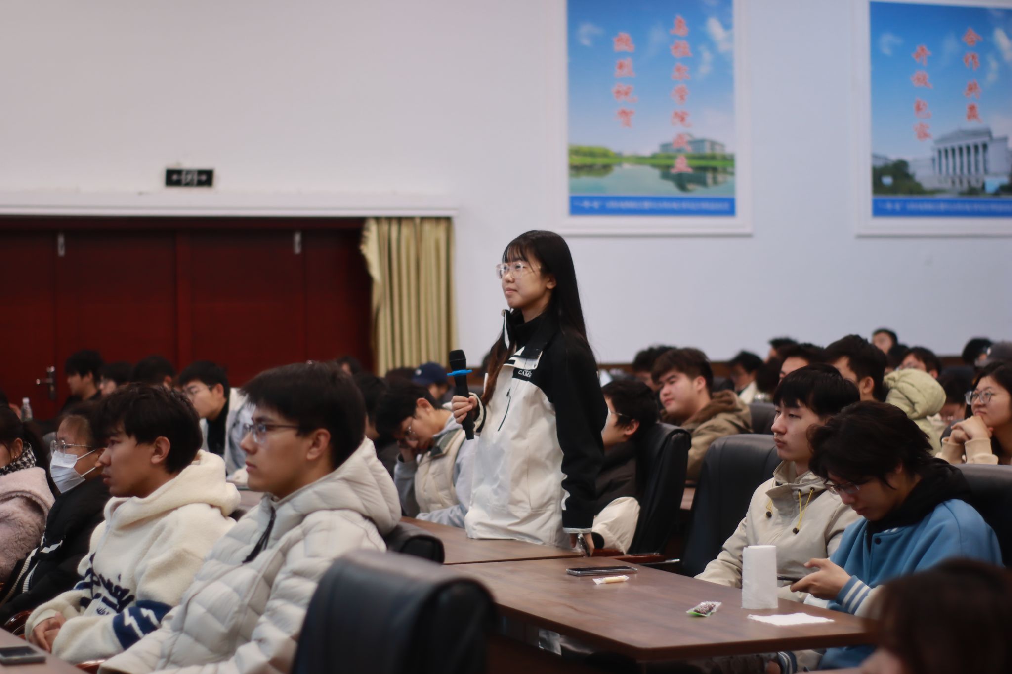 宣讲环节中,校团委创新实践部张志豪围绕西部计划相关政策展开系统梳理与精准解读。从服务专项设置、招募条件、报名流程等要素切入,结合青年职业发展规律,引导同学们立足专业特长、理性评估选择、积极做好准备,为西部之行夯实基础。我校2025届毕业生、现服务于新疆维吾尔自治区乌鲁木齐市沙依巴克区的志愿者张鑫以西部志愿服务工作为切入点,从新疆壮美独特的风土人情讲起,结合服务岗位实际,生动诠释了西部计划的实践内涵与地方政策支持,并通过鲜活的工作案例与真挚的成长感悟,让在场的华水学子深刻感受到西部发展的蓬勃生机与志愿服务的使命价值,进一步坚定了他们“到西部去、到基层去”的青春信念。在互动答疑环节,同学们围绕岗位适配、地域适应、职业发展前景等热点问题展开提问与交流,校团委及相关部门负责人现场予以细致解答。