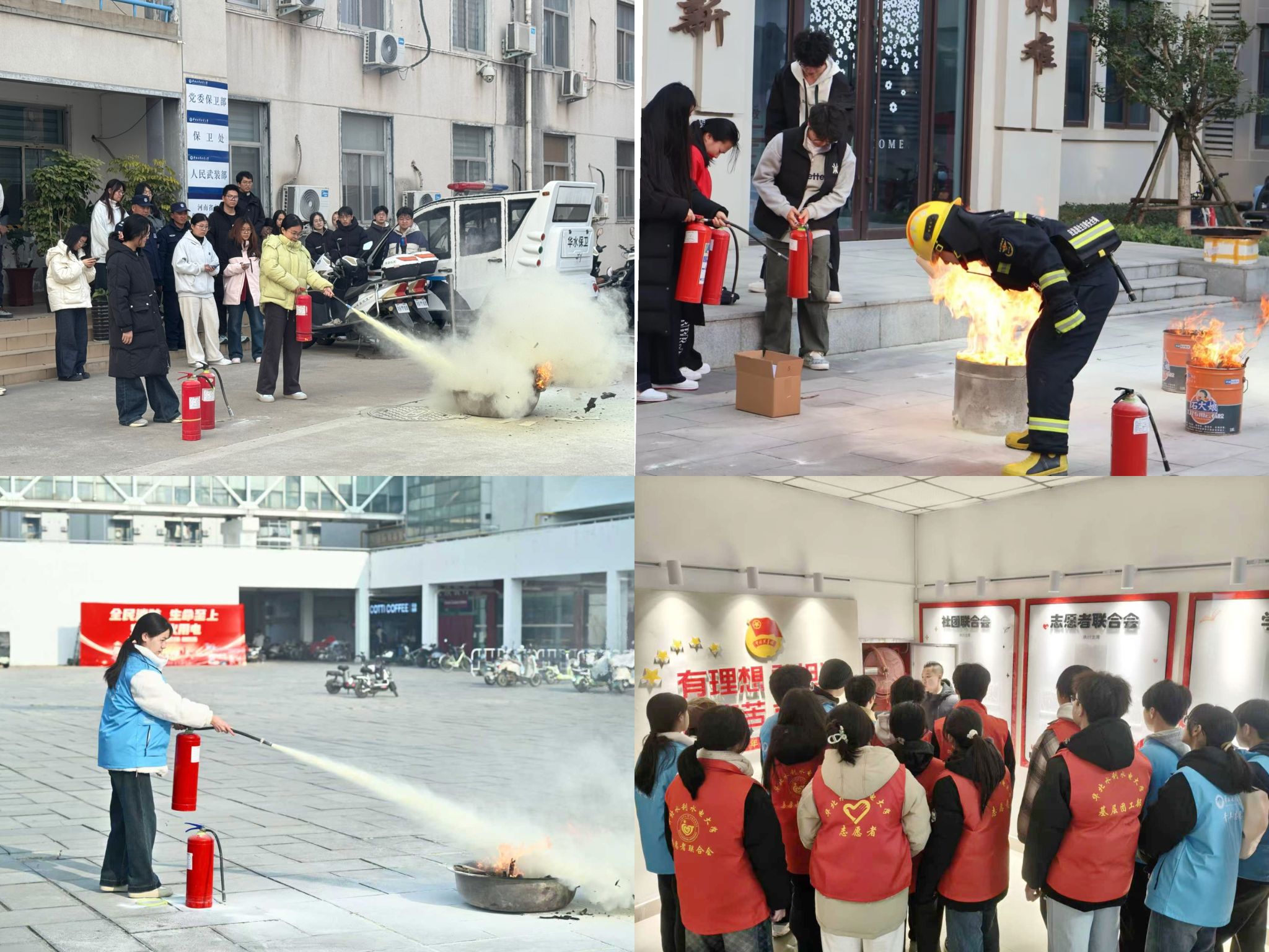 为增强校级学生组织骨干的消防安全意识与应急处置能力,筑牢校园安全防线,校团委联合河南省消防协会、校保卫处于12月18日至19日在三个校区同步开展“提升消防技能,守护平安校园”主题消防演练活动。校学生会、团工部、大学生社团联合会及大学生志愿者联合会等学生组织成员共百余人参与其中。