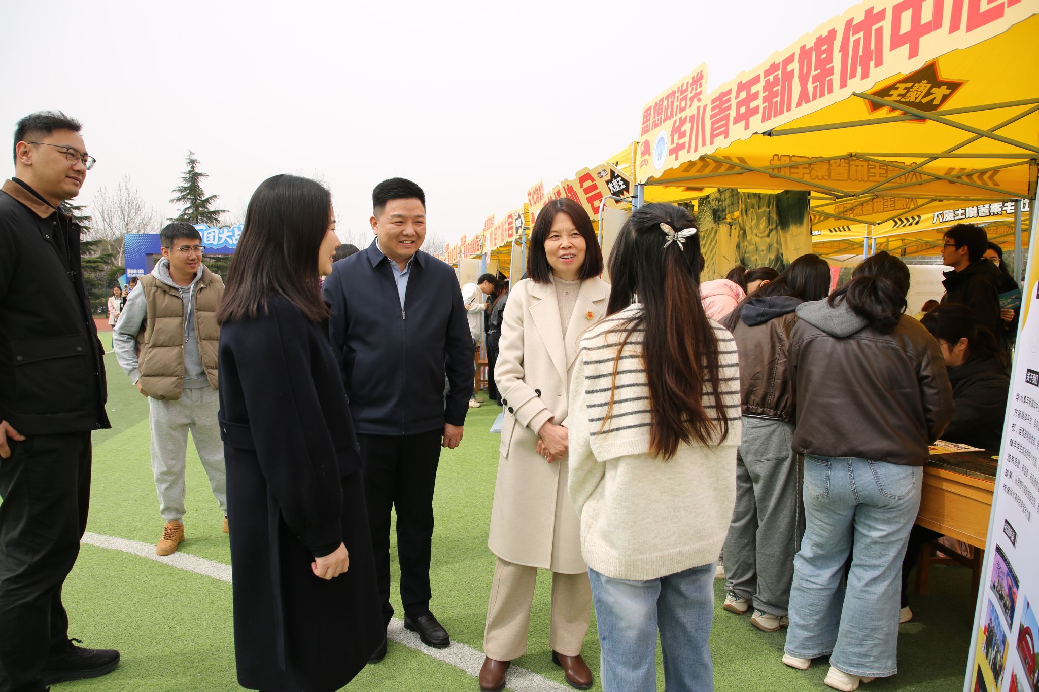 校党委副书记焦爱萍莅临现场,深入了解社团建设、活动开展及招新组织情况,与青年学生亲切交流,并对本次招新组织有序、形式新颖、育人导向鲜明及紧密贴合学校特色给予充分肯定。她指出,学生社团是落实新时代立德树人工程的重要载体,是构建“大思政”工作格局、完善第二课堂育人体系、提升学生综合素质的重要抓手,更是繁荣校园文化、服务学校卓越创新人才培养的有效平台。她强调,2026年是学校“十五五”开局之年,也是学校建校75周年,深入推进社团建设、打造优质校园文化、凝聚青年奋进力量,意义深远。要以社团建设为切入点,持续深化以文化人、以文育人、以文铸魂,不断增强校园文化内涵、彰显华水精神特质,推动社团成为最具活力、最具影响力的文化阵地;要始终坚持铸魂育人,将社团工作深度融入“大思政”育人格局,推动思政教育、专业教育、水文化育人与社团实践深度融合,打造品牌化、专业化、特色化的第二课堂育人体系;要持续加强规范化管理,健全分类指导、分级负责、全过程监管和科学评价长效机制,以制度刚性保障学生社团健康有序、高质量发展,真正将社团打造成为传承华水文脉、彰显校园活力的重要平台。