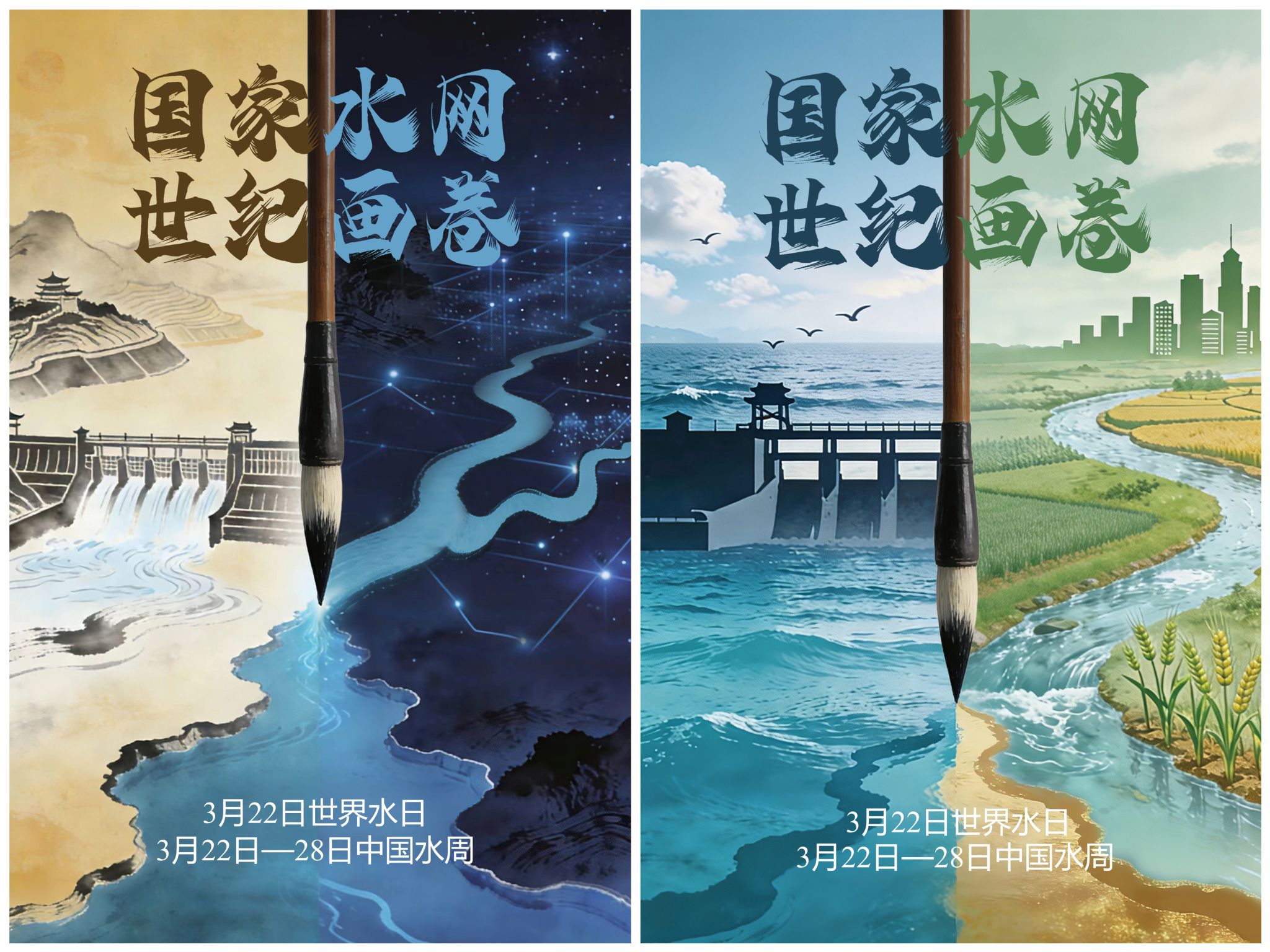 自2026年1月份征集活动启动以来,校团委高度重视,第一时间发布征集通知,积极联系动员相关学院(书院)师生发挥专业特长参与创作。通过院级推荐、校内初选等环节,从众多报名作品中优中选优,最终遴选报送13组高质量参赛作品。两件获奖作品紧扣活动主题,将水利工程脉络、水资源保护理念与艺术设计手法深度融合,以简洁有力的视觉语言展现“国家水网”的壮阔图景,传递出珍惜水资源、守护水生态的责任担当。在创作过程中,师生深耕主题内涵,反复打磨设计细节,从构图布局到色彩搭配,从元素选取到寓意表达,均经过多次修改,以严谨细致的匠心精神完成作品创作,充分彰显了华水师生的专业素养与创新能力。