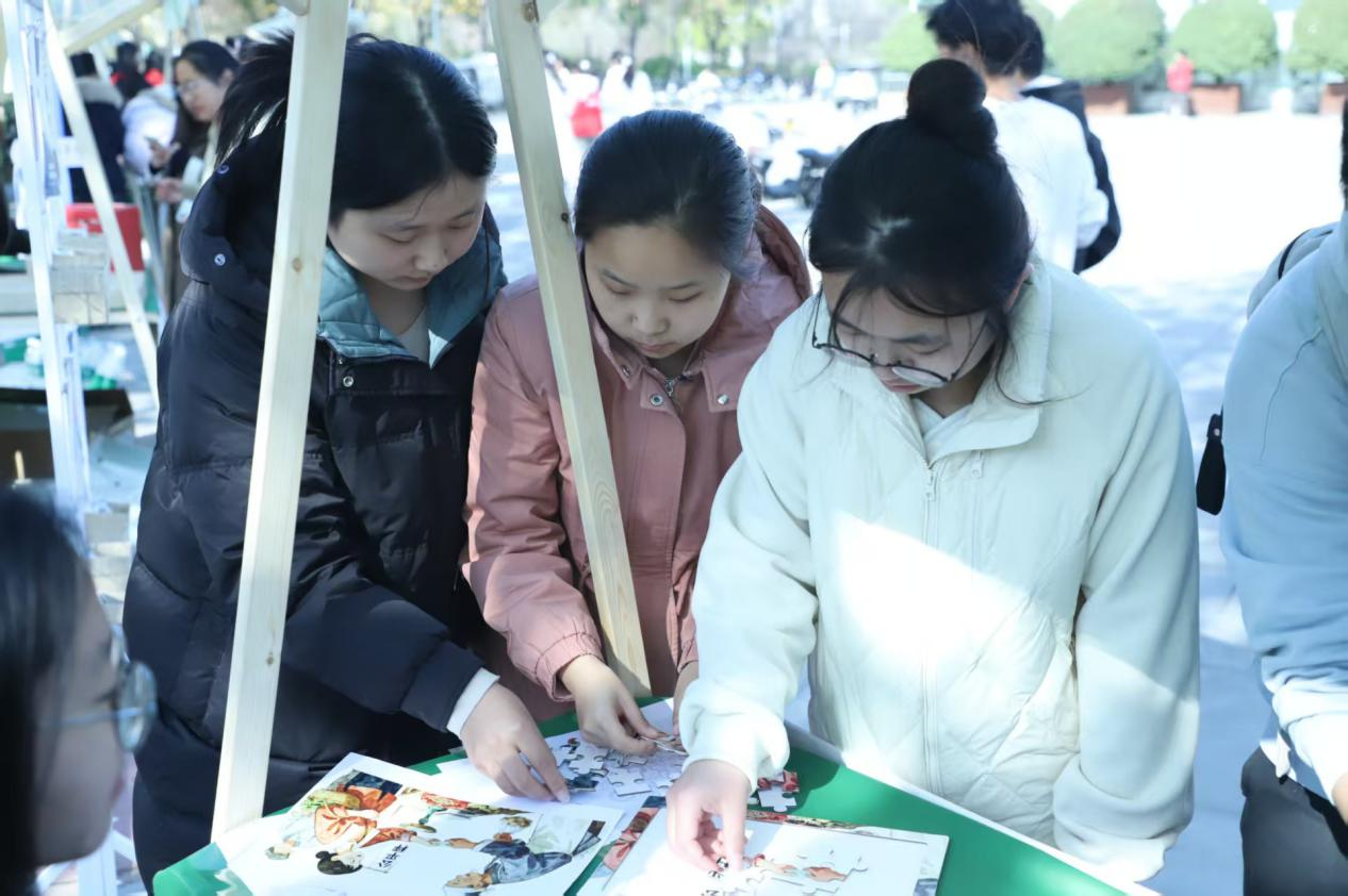 活动现场氛围热烈,同学们在志愿者引导下有序领取集章卡,踊跃参与各类互动环节,在实践体验中感受诚信力量,将“诚信”理念内化于心、外化于行。本次活动精心设置四大特色板块,内容丰富且形式新颖,实现思想引领与趣味体验的有机融合。在“诚信能量舱”环节,同学们撰写诚信故事或亲身感悟,装入信封后相互交换品读,通过分享交流凝聚价值共鸣;在“诚信风采晒圈”环节,同学们在社交平台传播活动精彩瞬间,有效延伸了正能量辐射范围;“诚信大赢家”板块则创新采用大富翁游戏模式,青年学生组队参与巨型棋盘挑战,通过完成诚信情境答题、分享承诺故事等任务,在趣味互动中深化对诚信内涵的认知;“信义拼途”环节则依托团队协作完成图块拼接、解锁诚信叙事,进一步强化了师生对诚信理念的价值认同。