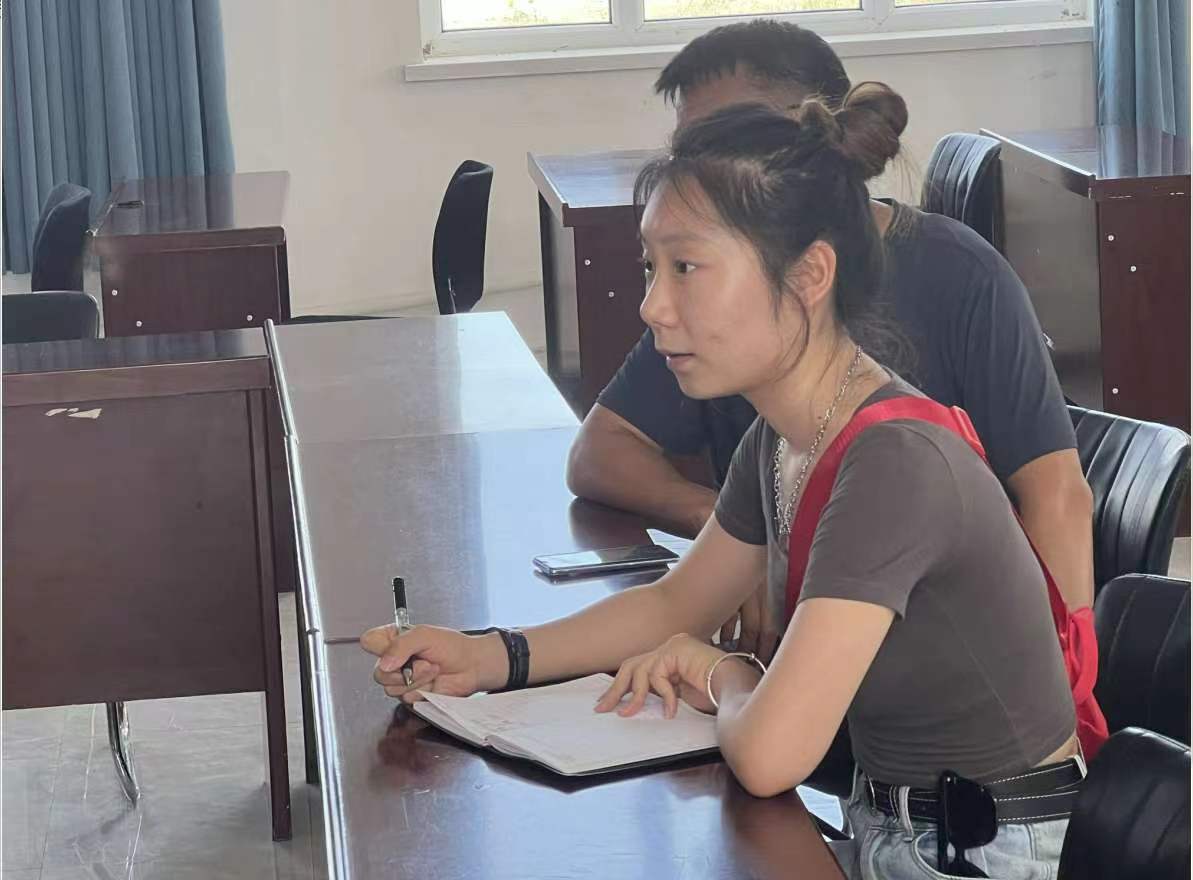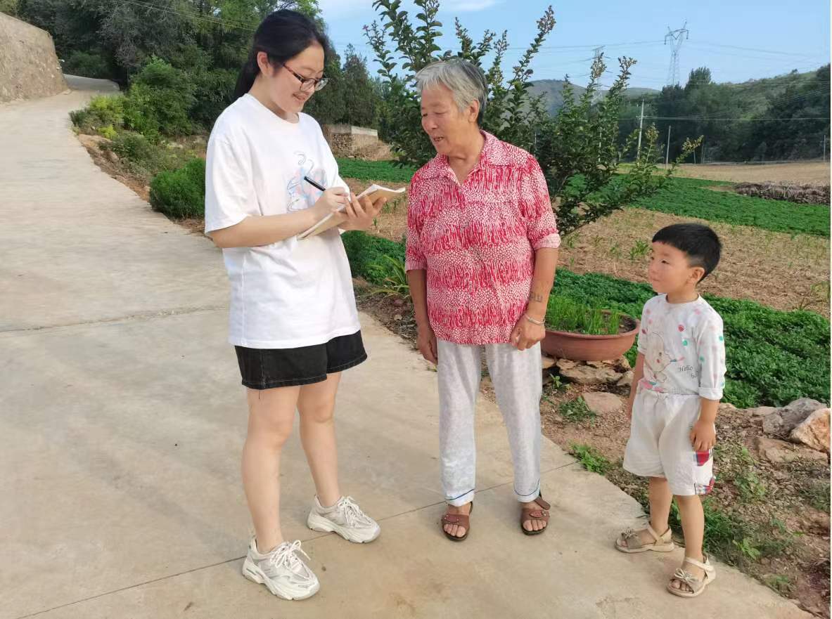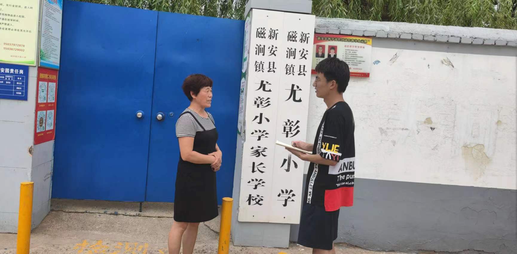 图为志愿者了解教育资源匮乏问题。通过走访得知近年来尤彰村政府大力引进知识型人才入村,为乡村教育事业添砖加瓦。