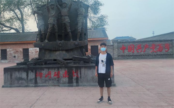 图为萤火虫党史学习实践队成员许路同学来到他们县的第一个党支部纪念园来参观学习红色党史,传承红色文化。