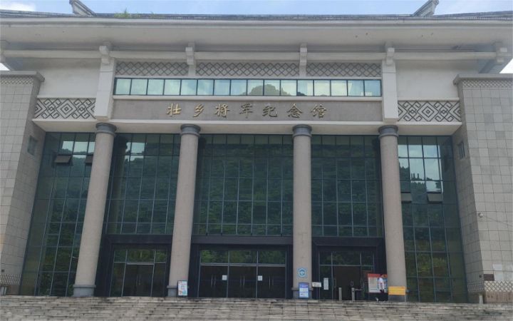 图为萤火虫党史学习实践队成员谭海龙同学去到位于广西壮族自治区东兰县的壮乡将军纪念馆参观学习党史文化时拍摄的纪念馆大门全景。