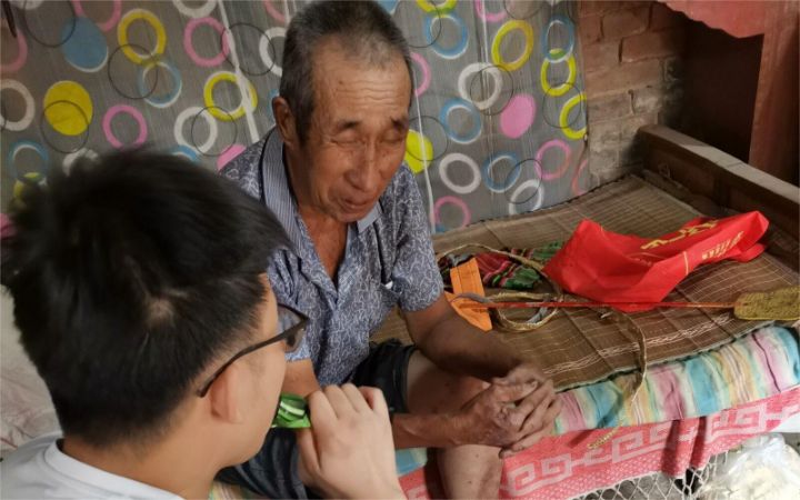图为“萤火虫”党史学习实践队成员张佳乐同学拜访当地老党员,跟老党员学习红色党史,感受红色文化。