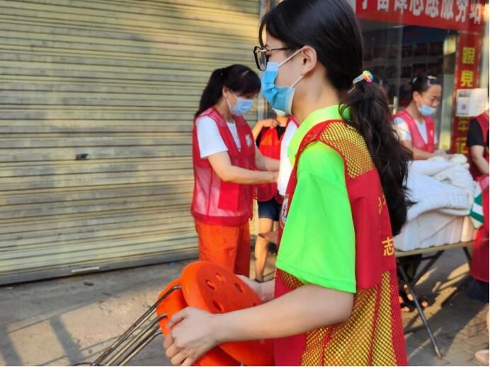 图为实践团成员与爱心站点工作人员打扫整理活动场地。