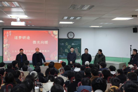 寒冬砺剑,研途送暖。为缓解考研学子备考压力、提振迎考信心,12月5日下午,土木与交通学院在北阶三教室举行“逐梦研途,微光向暖”考研慰问活动。学院党委书记郑荣军、院长汪志昊出席活动并作动员讲话,院领导崔栋、赵洋、李克亮,毕业生辅导员以及2022级考研学子参加活动。