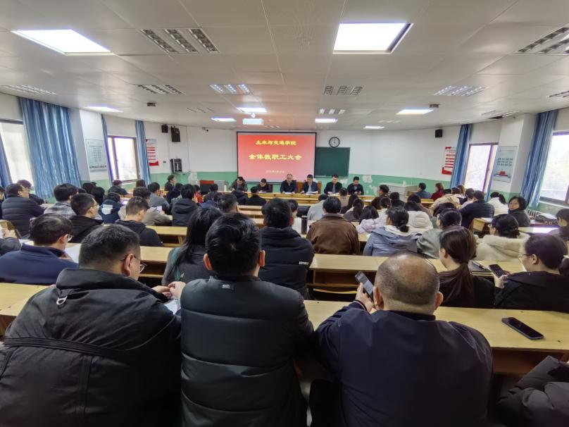院长汪志昊传达了学校关于2026年度重点工作的会议精神和总体部署,并结合土木与交通学院实际,从学科建设、专业发展、人才培养、科研创新、师资队伍、社会服务等方面对学院2026年重点工作进行全面部署和动员。他强调,2026年是“十五五”规划的开局之年,学院要立足新起点,全体教职工提高站位、凝聚共识、勇于担当,抢抓发展机遇,聚焦内涵建设,确保学校各项决策部署落地生根。