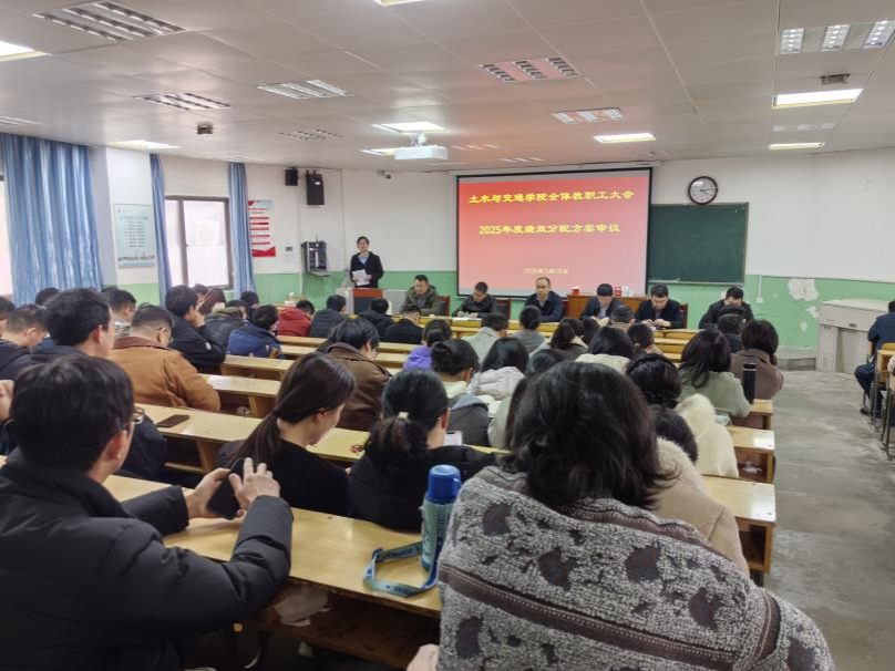 3月18日下午,土木与交通学院在花园校区北阶三召开全体教职工大会,审议通过了《华北水利水电大学土木与交通学院2025年度责任目标考核与绩效分配细则》,并传达2026年度学校重点工作,部署学院年度重点工作。学院党政领导班子成员及全体教职工参加会议。会议由学院党委书记郑荣军主持。