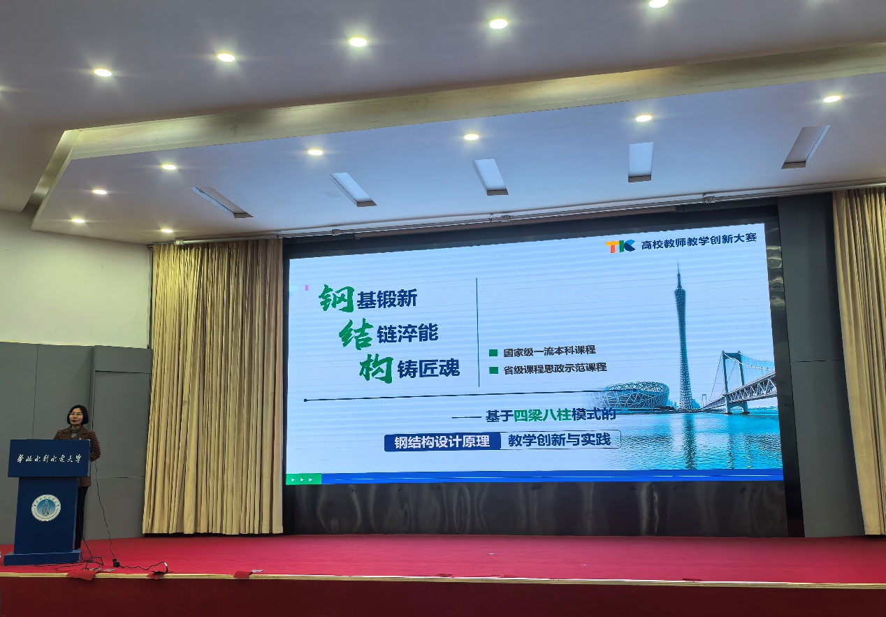 11月22日,学校第18届“菁英杯”青年教师课堂教学创新大赛决赛圆满落幕。我院选派的三位教师在比赛中表现优异,其中赵明爽老师荣获工科组二等奖,李艳春、邝羽平两位老师分获工科组三等奖。同时,学院凭借出色的赛事组织工作,荣获大赛“优秀组织奖”。在大赛闭幕式上,学院教师、第五届全国高校教师创新大赛二等奖获得者王慧作题为“基于四梁八柱模式的《钢结构设计原理》教学创新与实践”的展示报告。