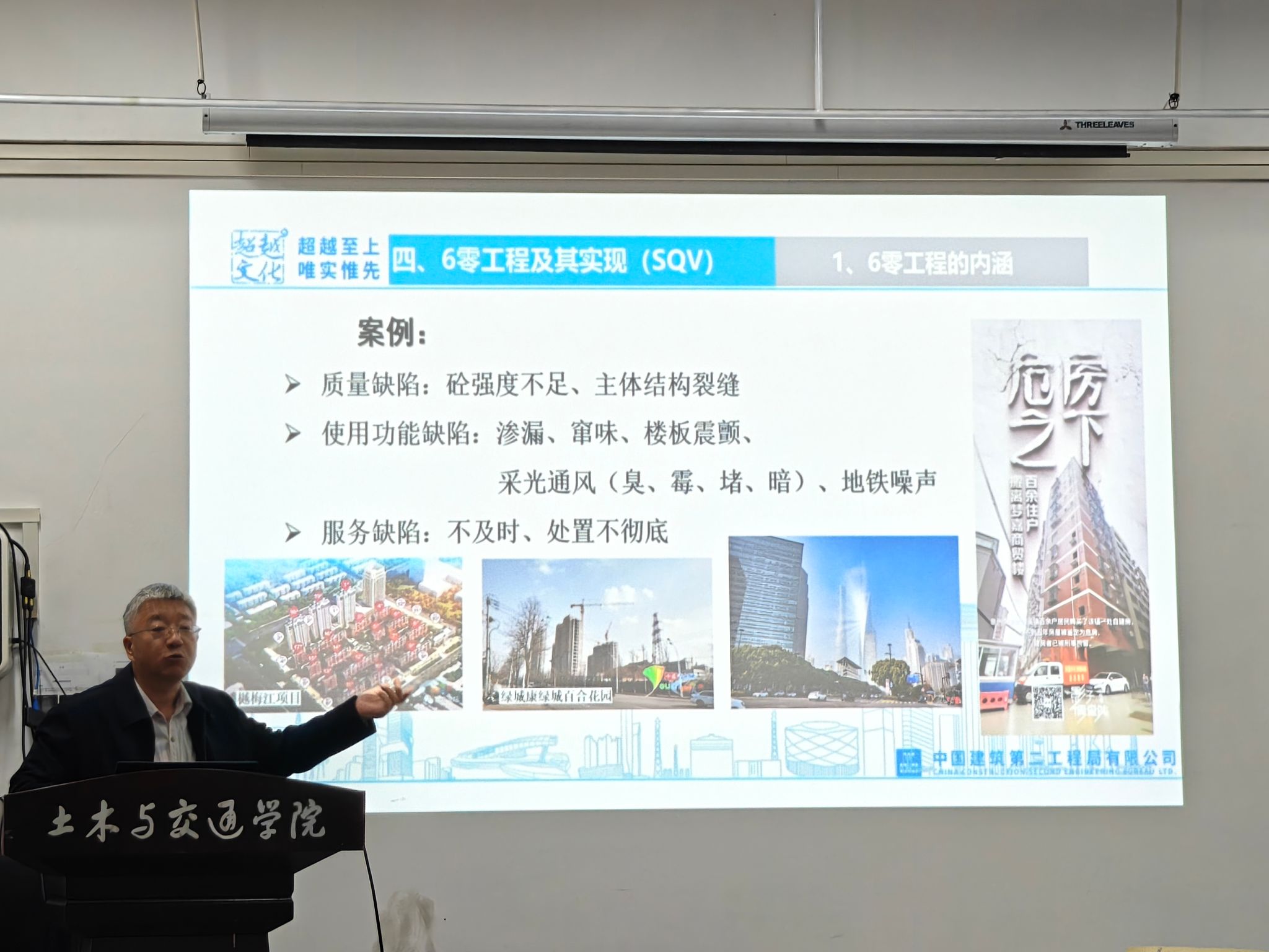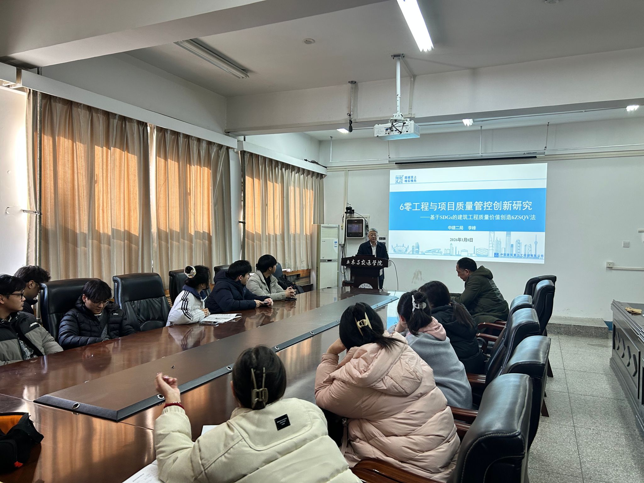 1月8日,中国建筑第二工程局有限公司正高级工程师李峰应邀来我院作《6零工程与项目质量管控创新研究—基于SDGs的建筑工程质量价值创造6ZSQV法》的学术报告。学院相关学科骨干教师及研究生参加了本次报告会,会议由学院科研与资产管理办公室主任魏慧男主持。