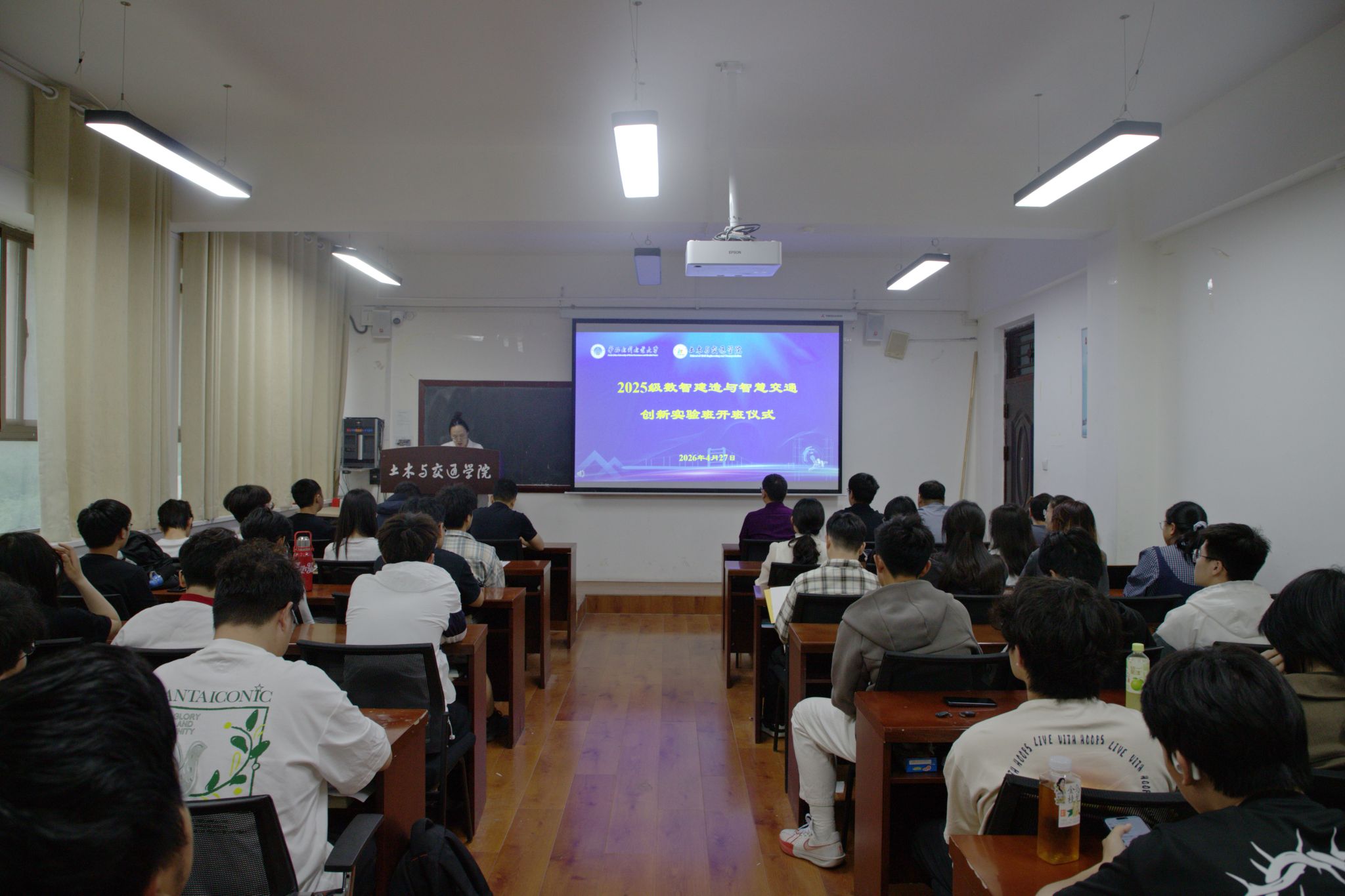 4月27日晚,我院2025级数智建造与智慧交通创新实验班开班仪式在花园校区2304教室顺利举行。学院副院长赵洋、实验班负责人李潇雅、2025级实验班全体科创导师及学生共同见证了这一重要时刻。本届实验班的成立是学院落实“一院一班”的重要举措,是深化本科教育教学改革、构建拔尖创新人才培养体系的关键实践,体现了学院主动服务国家创新驱动发展战略、人才自主培养的责任担当。未来,学院将持续整合优质资源,完善保障机制,全力支持实验班学生成长成才,共同书写创新教育的新篇章。