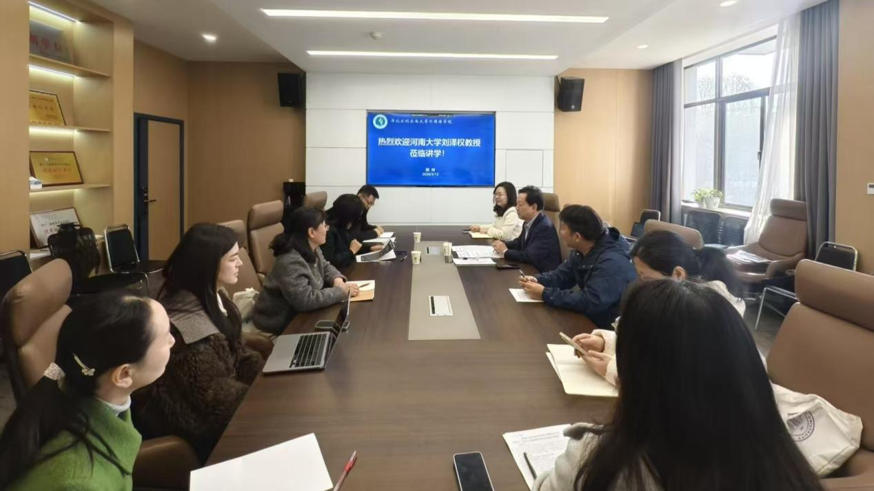 为扎实推进我院2026年度国家社科基金项目申报工作,切实提升学院教师科研项目申报质量,3月12日上午,华北水利水电大学外国语学院在8209会议室举办国家社科基金项目申报指导会。本次会议特邀河南大学刘泽权教授莅临指导,学院副院长李世杰主持会议,副院长万钧及学院骨干教师共同参会学习。