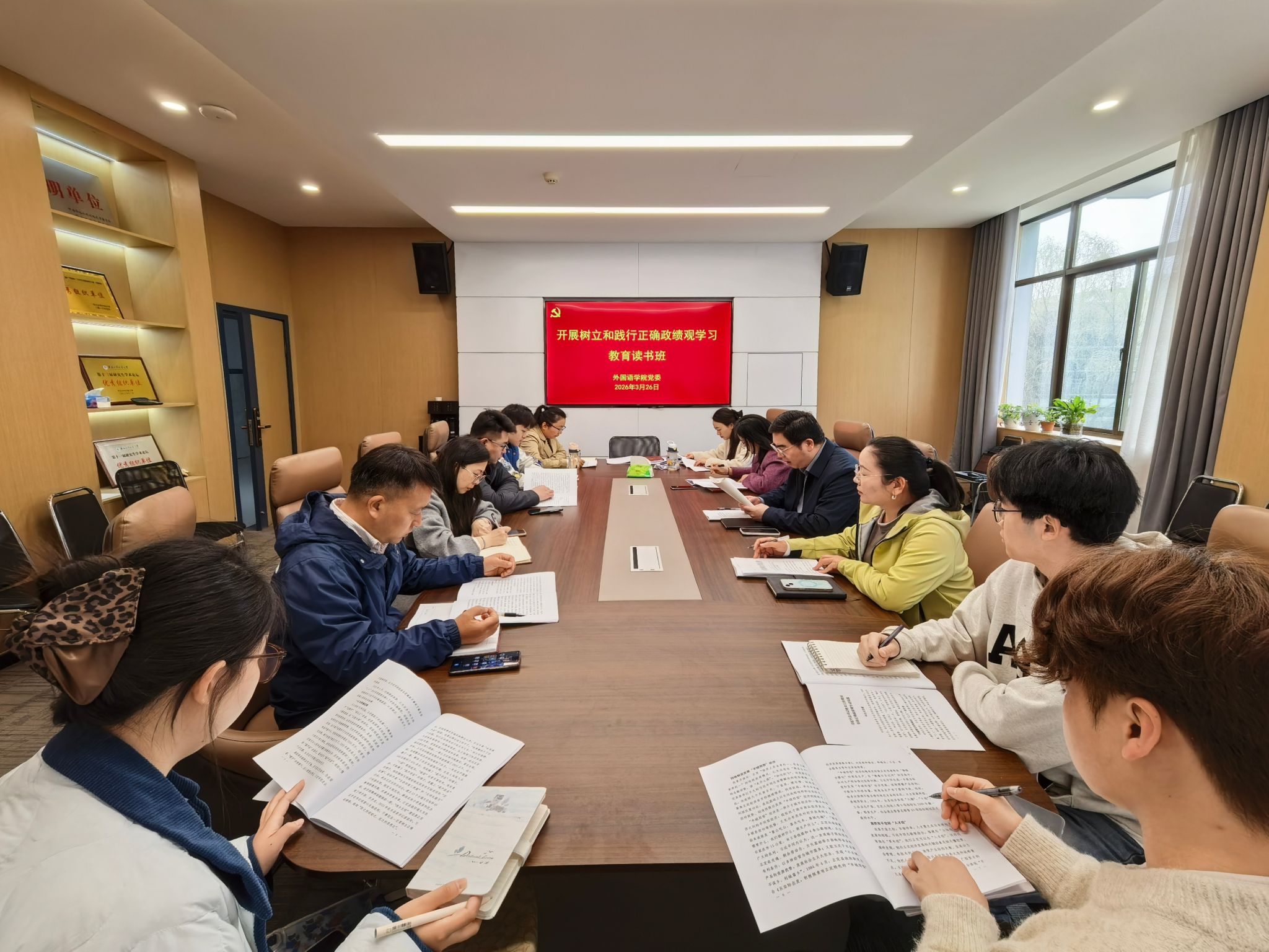 为深入贯彻落实关于树立和践行正确政绩观的工作要求,切实引导全院党员干部牢记初心使命、锤炼过硬作风,外国语学院于3月26日至27日举办了树立和践行正确政绩观学习教育读书班。学院领导班子成员、各党支部书记参加了此次读书班,学院党委书记孟治刚主持并发表重要讲话。