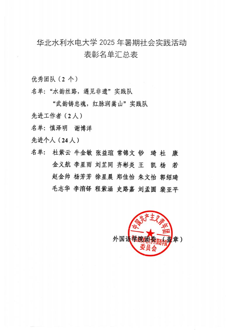 2025年暑假,华北水利水电大学外国语学院团委在学院党委和上级团组织的指导下,围绕“小我融入大我 青春服务基层”的主题,开展暑期“三下乡”社会实践活动。学院高度重视活动策划与准备,严格推进执行管理,组建6支校级重点团队,带动33名学生开展分散式个人实践,实践足迹覆盖郑州、许昌、新乡、鹤壁、驻马店等地,涵盖理论宣讲、乡村服务、文化传承等领域。
