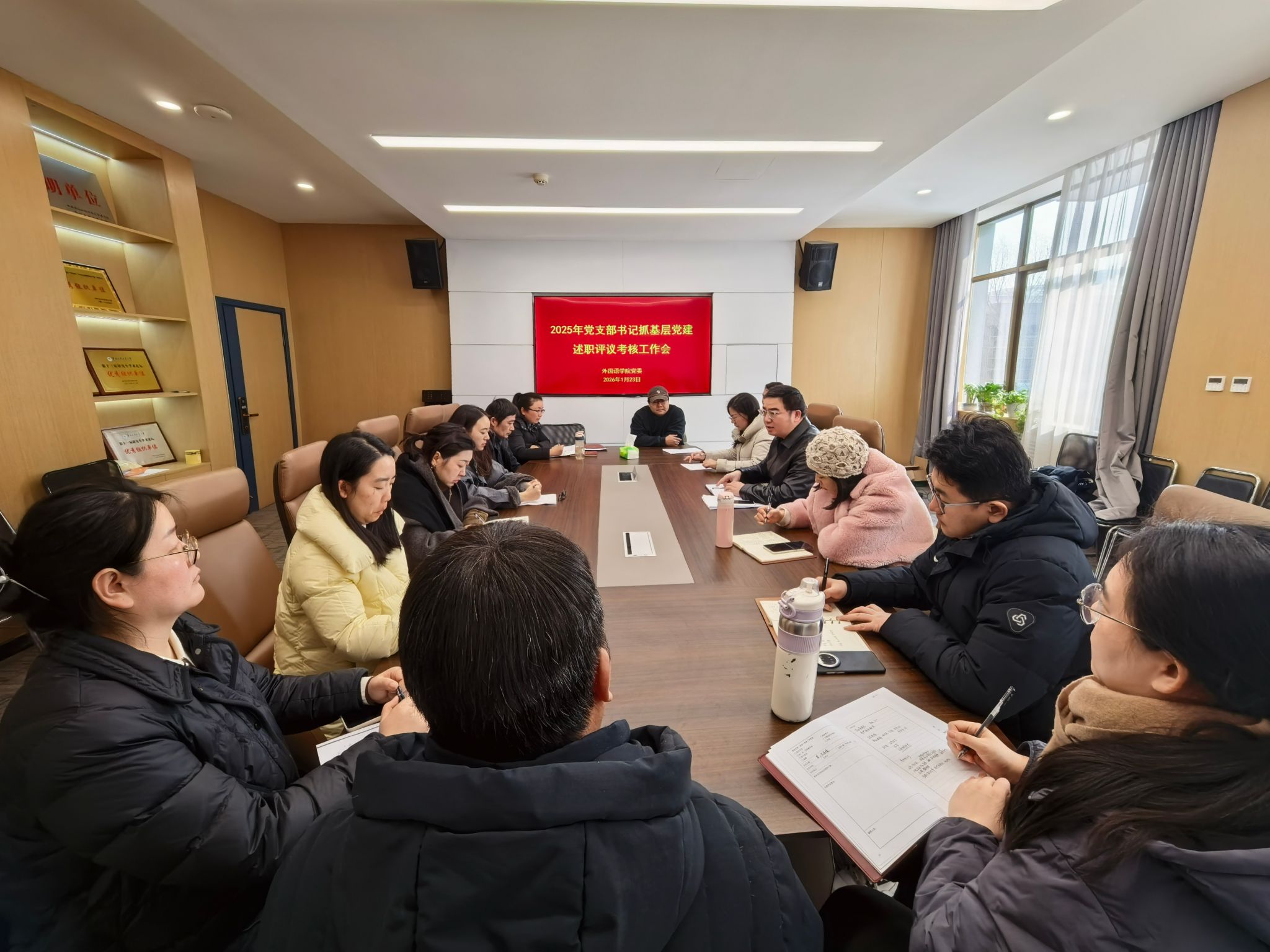 为深入贯彻落实新时代党的建设总要求,全面提升基层党建工作质量,2026年1月23日上午,外国语学院党委在8号文科楼8209会议室召开2025年度党支部书记抓基层党建述职评议考核会议。学院党委书记孟治刚、党委副书记胡倩出席会议,各师生党支部书记参加会议。会议由党委书记孟治刚主持。
