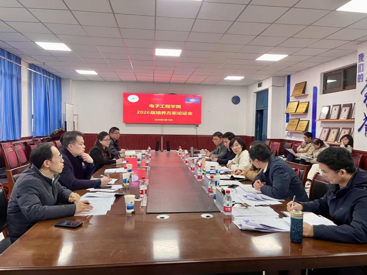 为深化人才培养模式改革,进一步提升本科人才培养质量,3月19日下午,电子工程学院在S5-203(西)召开2026版本科人才培养方案修订论证会。会议邀请河南工业大学杨铁军教授、郑州航空工业管理学院陈宇教授、河南科技大学王辉教授、郑州轻工业大学刘德伟教授、中电科二十七所魏龙超高工等专家现场指导,北京航空航天大学张有光教授、河海大学霍冠英教授线上参会指导。教务处处长郭瑾莉、副处长周冠琼,学院党委书记武玉敬、院长许磊及学院领导班子成员、各专业负责人、骨干教师等参加会议。武玉敬主持会议。